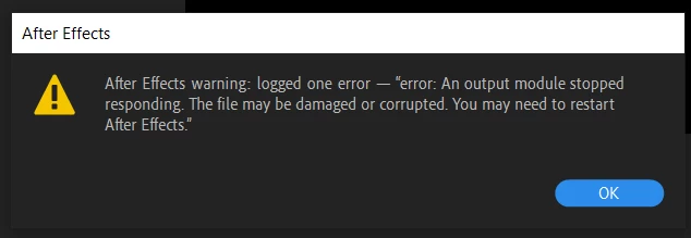 help pls :( "error: An output module stopped responding. The file may be damaged or corrupted."