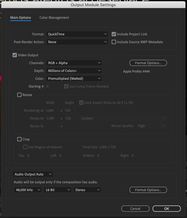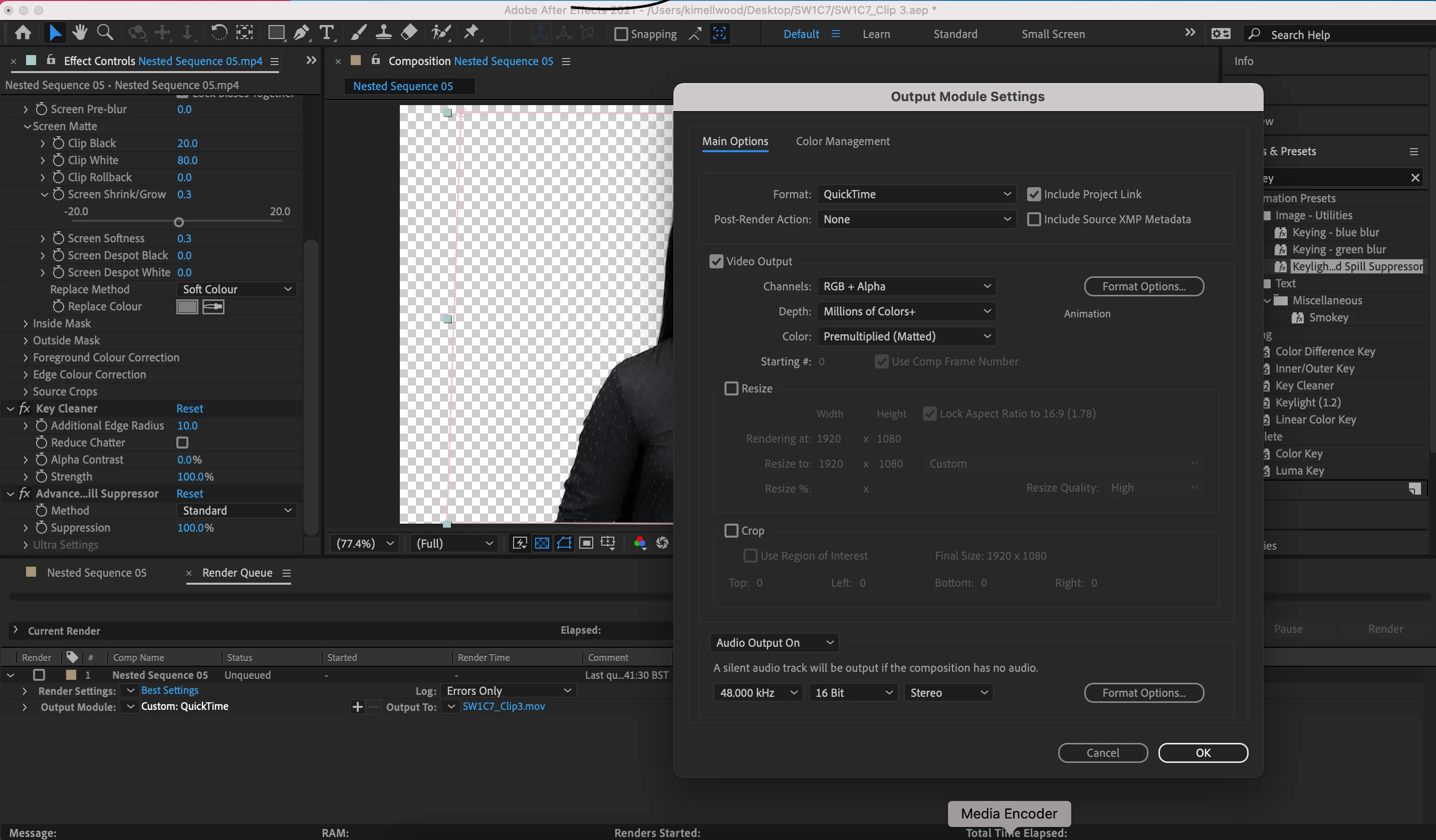I've been using After Effects to edit some green screen footage, I now want to export my files with a transparent background so I can use in Premiere. However I must be doing something wrong as it just exports with a black background rather than transparent, I've followed tutorials (exported as rgb+alpha) but it just isn't working. What's odd is it worked a few days ago. Screenshot attached can anyone advise please?
