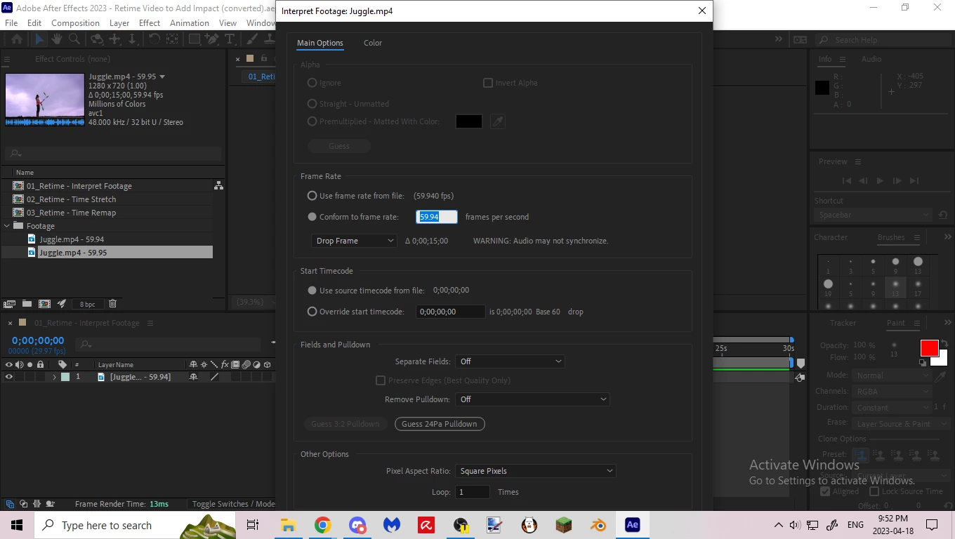 Help with Interpret Footage pop up in After Effects