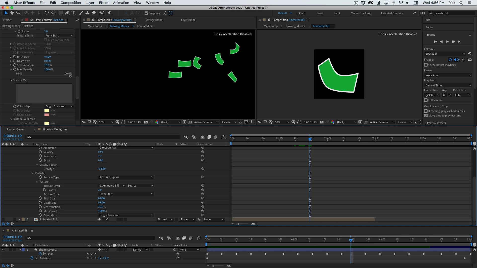 I want the money to fly out of the car. I'm in CC particle world with Textured square, because Textured QuadPolygon rotates in 3D which I don't want.