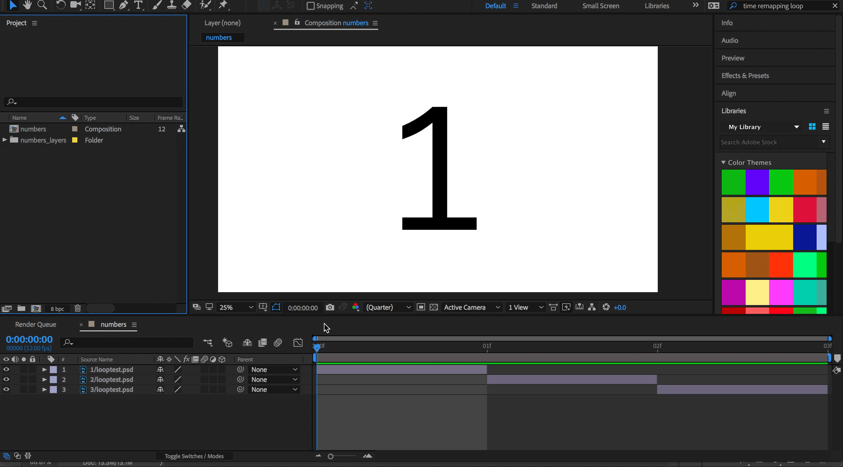 Here's the animation where the numbers go from 1 to 3 rapidly, with each number lasting just one frame. This is how I want the loop to look.