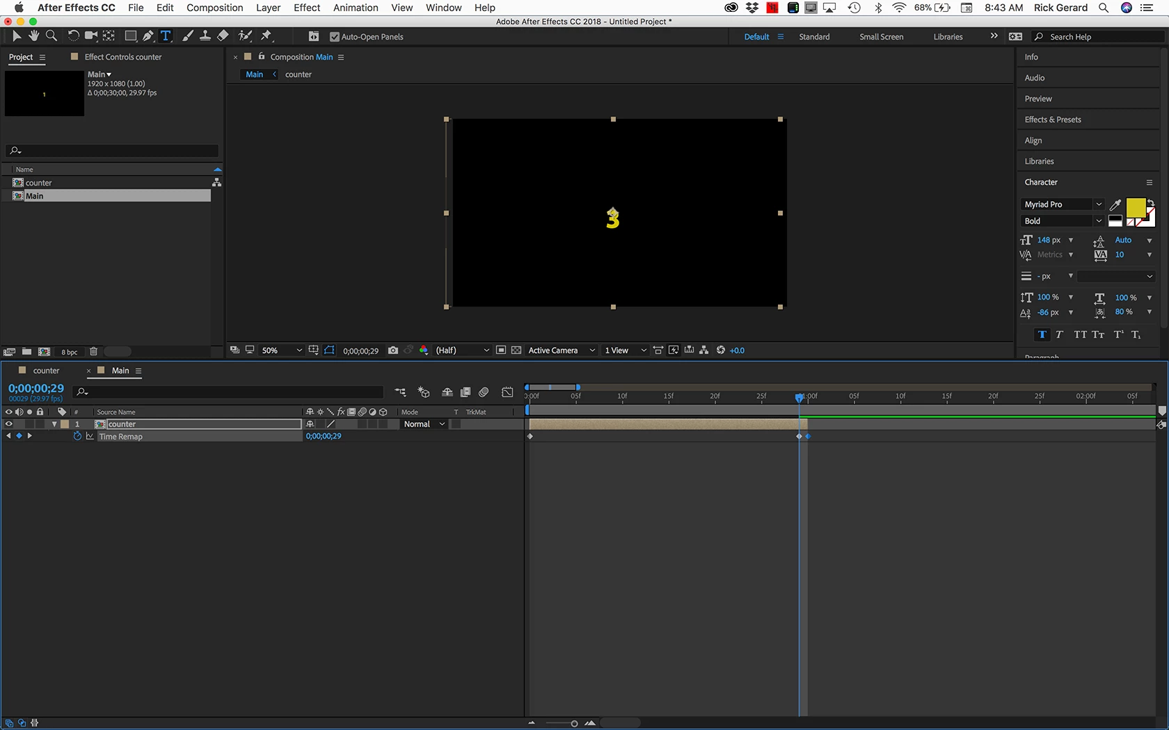 I know this part is finicky because it makes the last frame disappear in the first segment of the loop. I understand the trick is to go to the penultimate frame in the Time Remapped clip, and create a new keyframe in Time Remapping there. Then I'm supposed to delete the last keyframe. So I went ahead and did that.