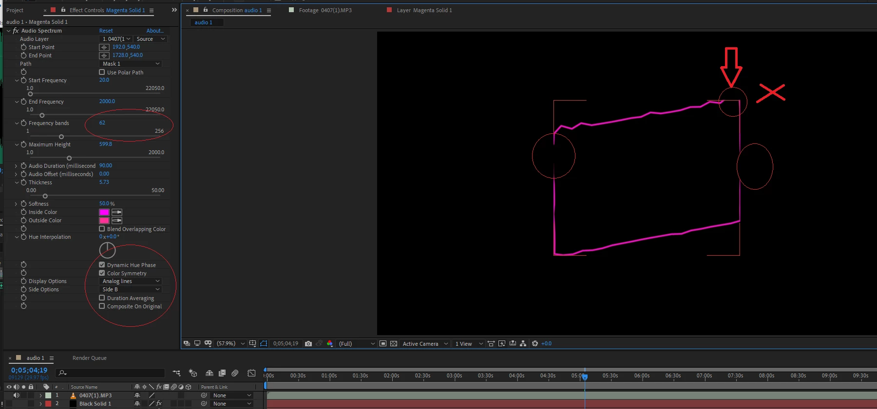 My selection of "side B" limits the line to the square frame.