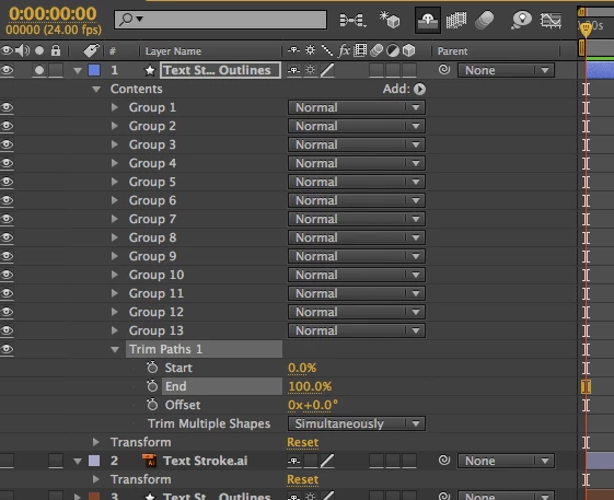 How do I use "Trim Paths" after "Create Shapes from Vector Layer" on a strokes only layer?