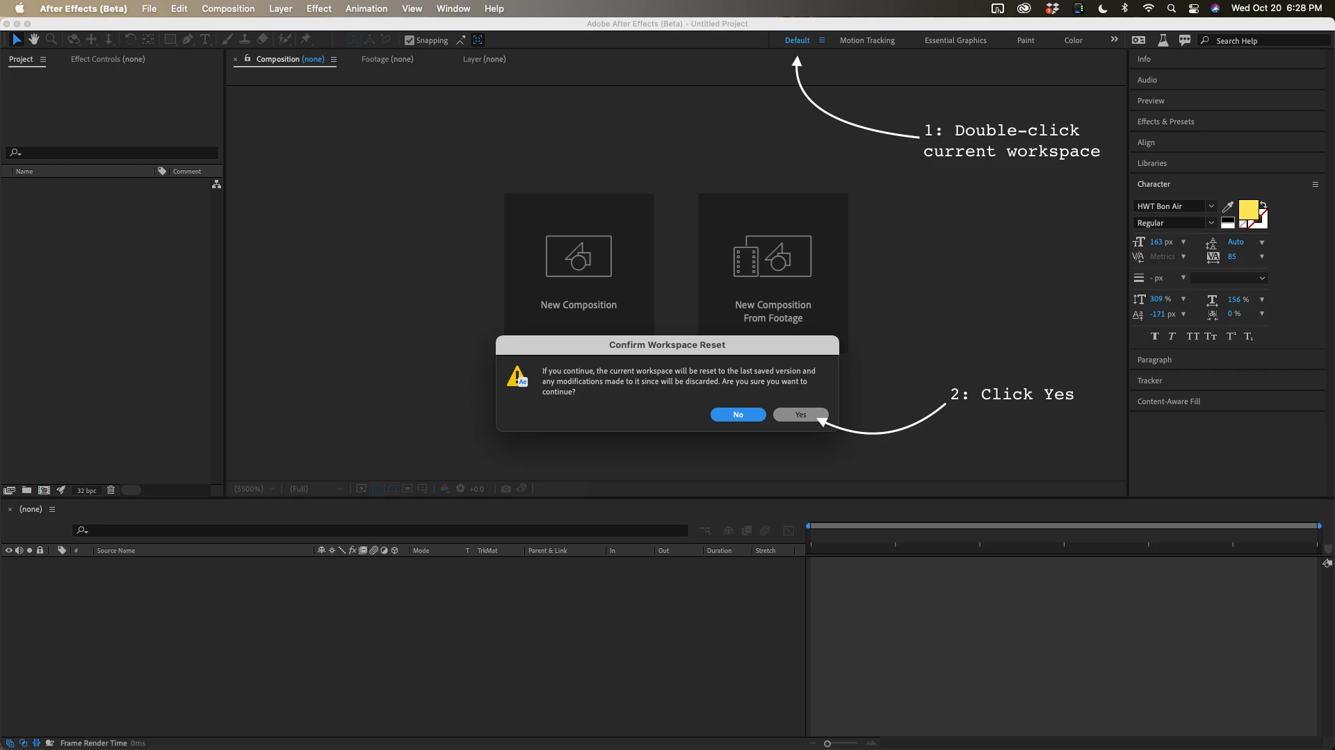 You can also go into the toolbar and drill down and edit your workspaces so the most common ones you use are arranged for the way you work. Using the right workspace will save you a lot of time. Here's my layout being reset: