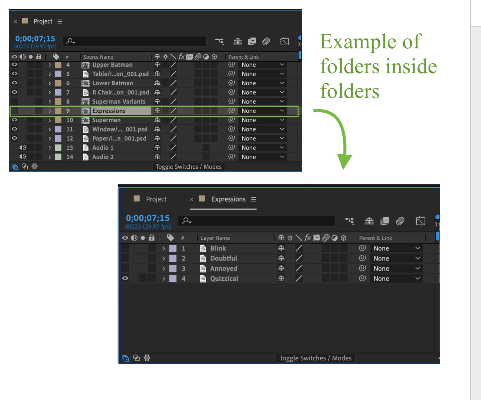 So here’s my problem: I don’t know how to cut to another shot or image. For example, I want to go from a Wide Shot of both my characters to a Close Up Shot of one of my characters. When the time comes to change shots, I’d like to create a new frame that contains only my Close Up Shot folder (and not my Wide Shot folder).