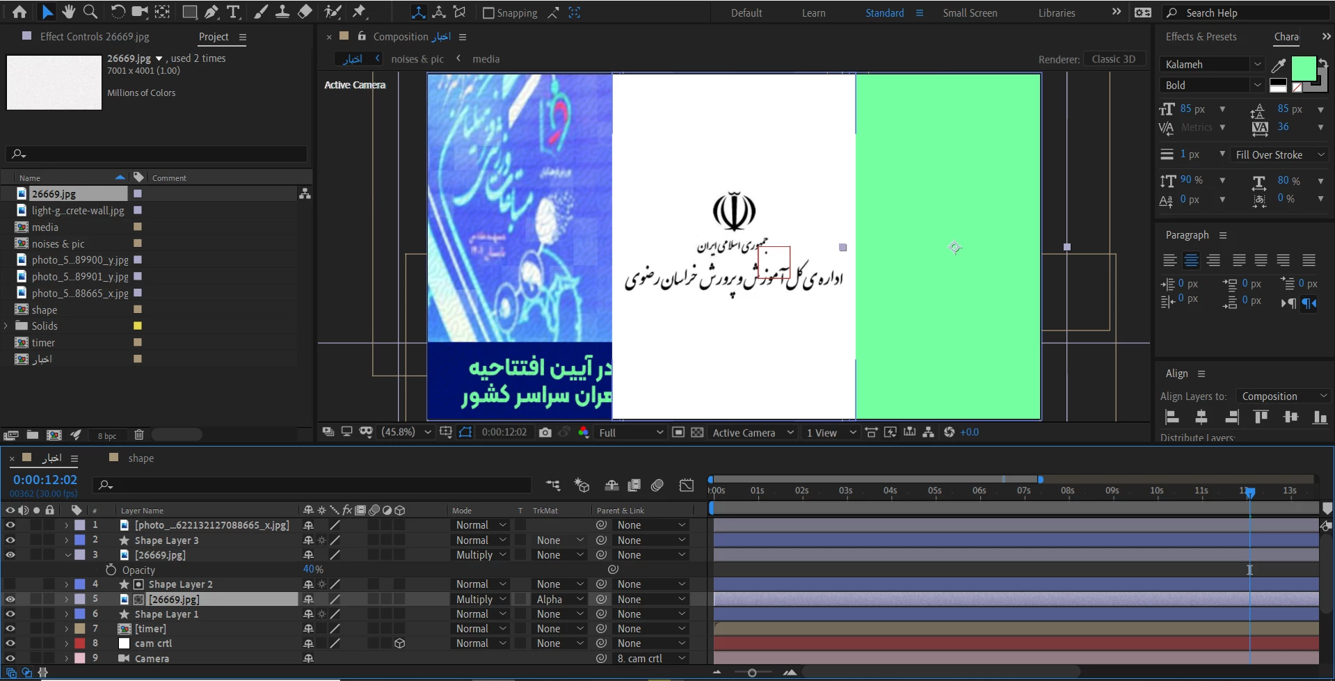 I wanted to create a small motion graphic by after effects 2019 cc and I wanted to use a texture on two shapes. but I don't know how to do it. Can you halp me?
