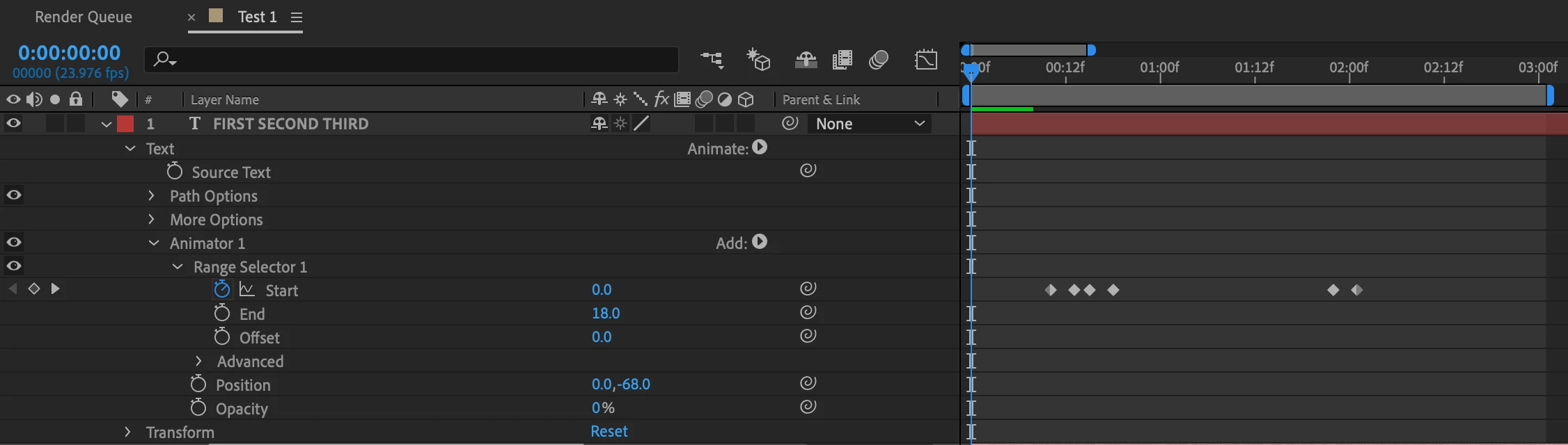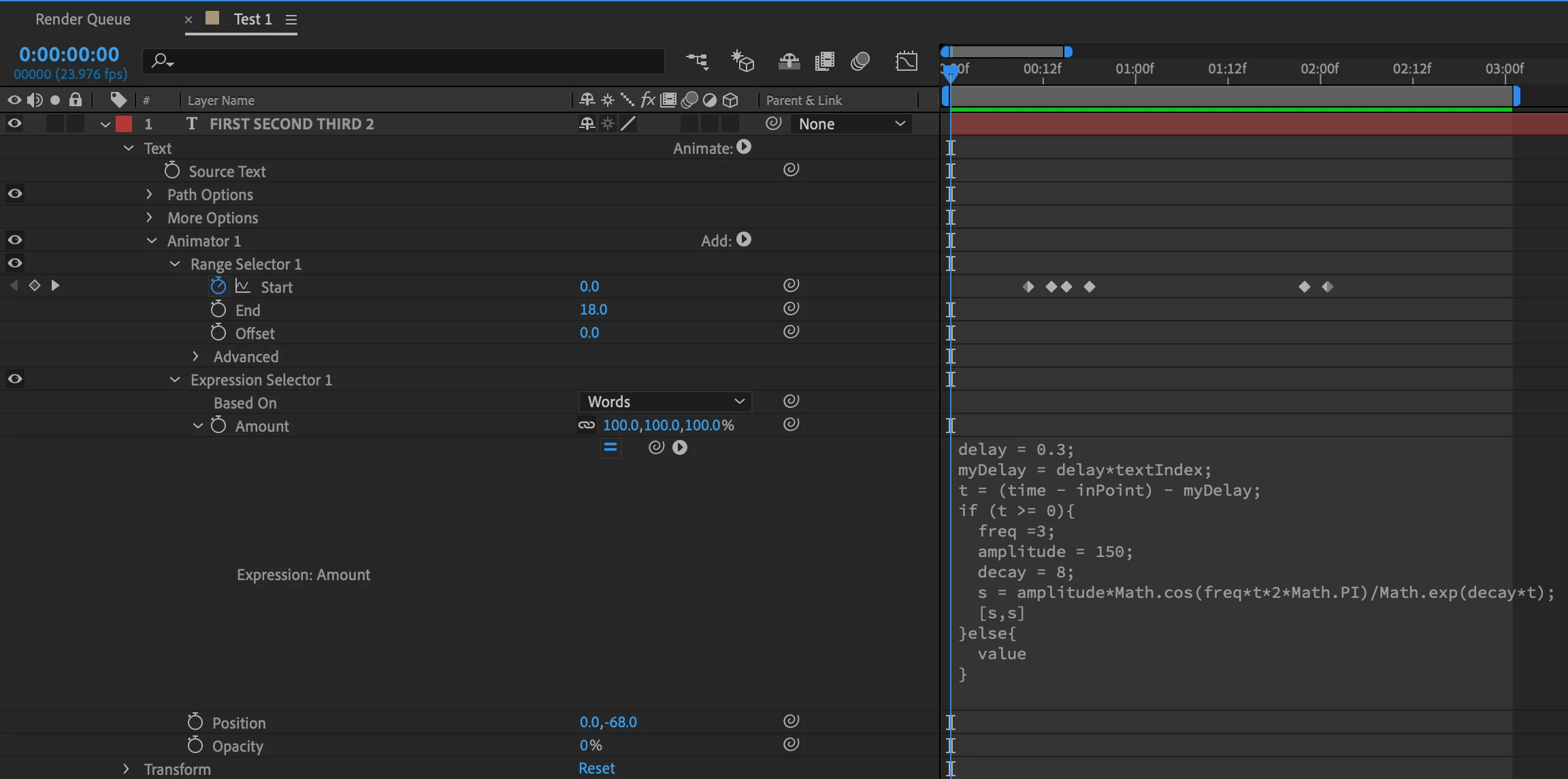 This first one is a normal text animation with a range selector where the words come in at different times.
