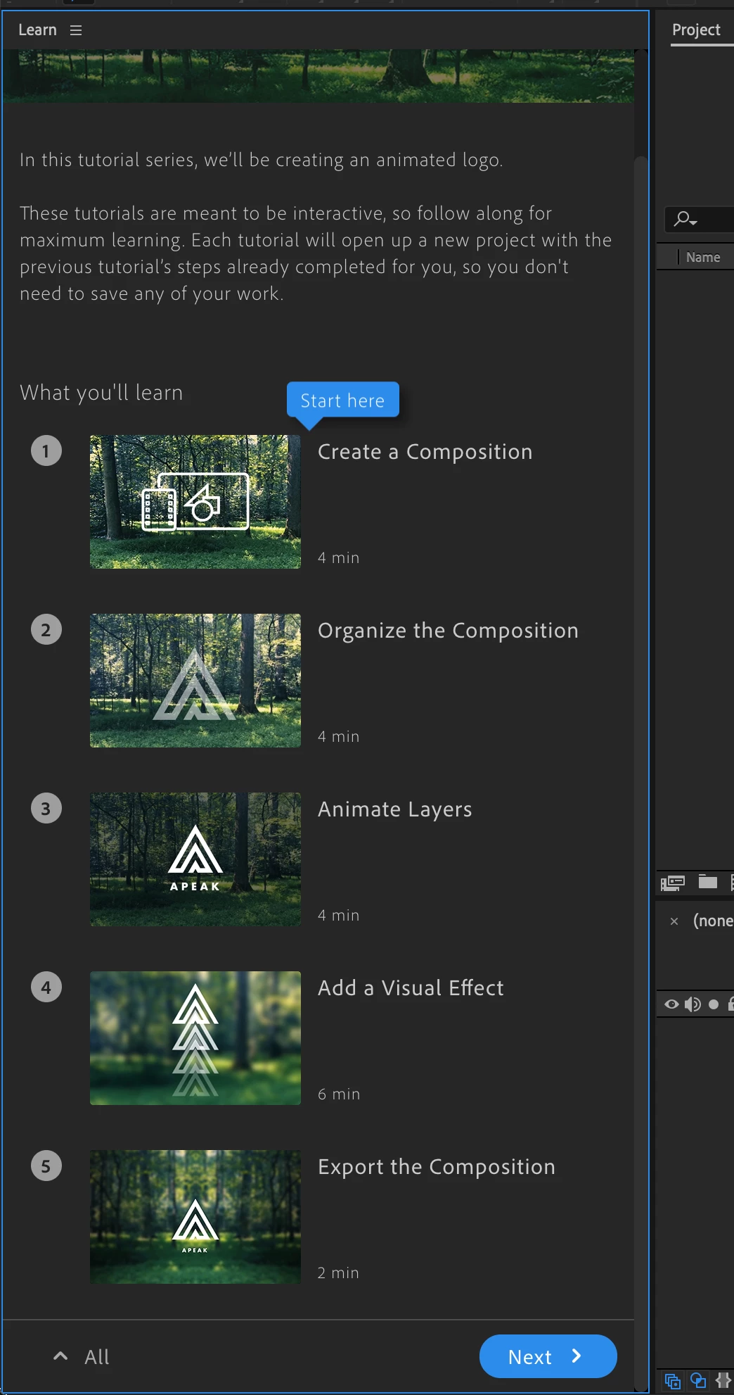 This will take you through a guided tour of the UI and the process of adding and animating effects.