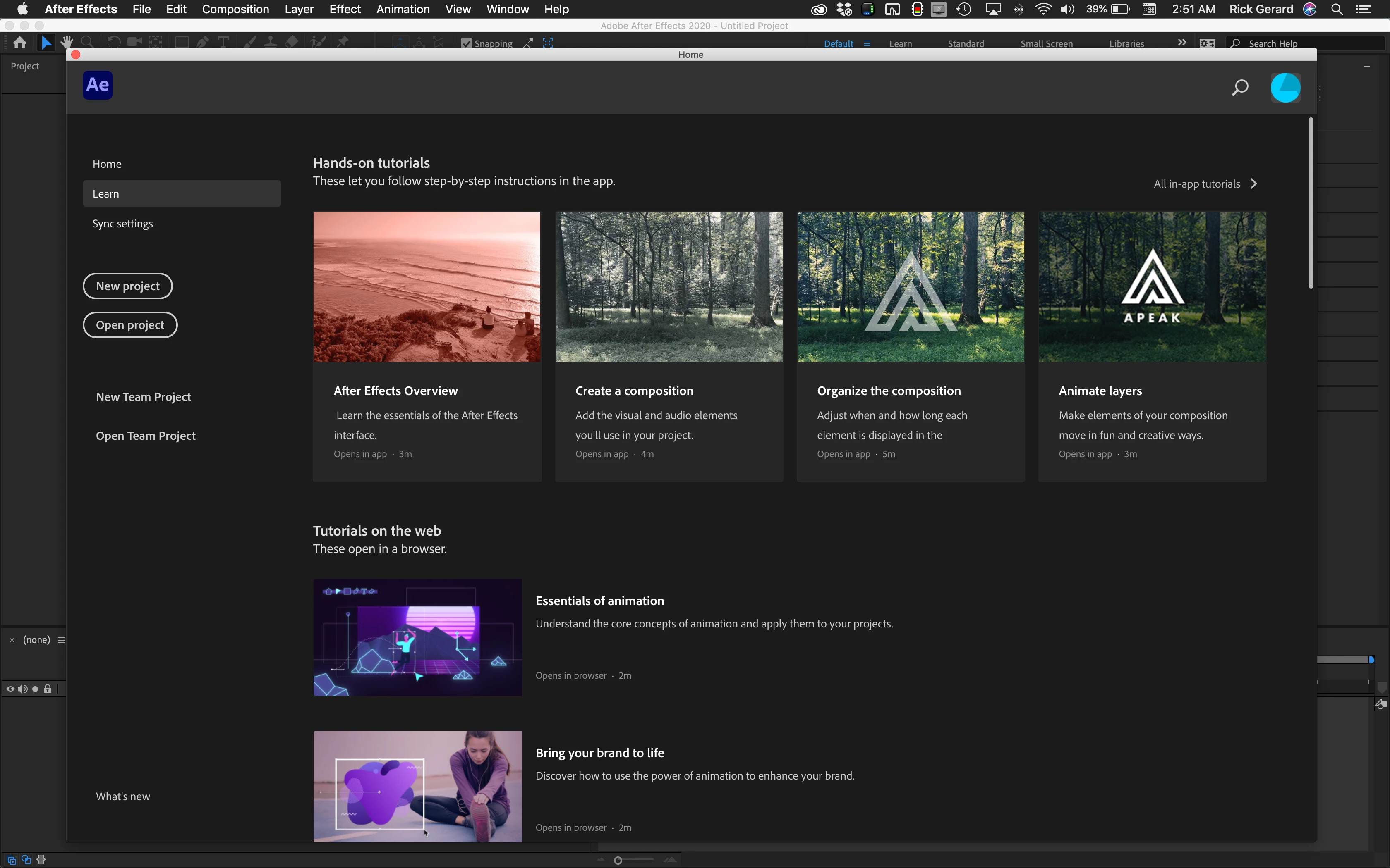 If you are completely new to AE please start with the User Guide or open the Learn section of the Home Screen or the Learn workspace.