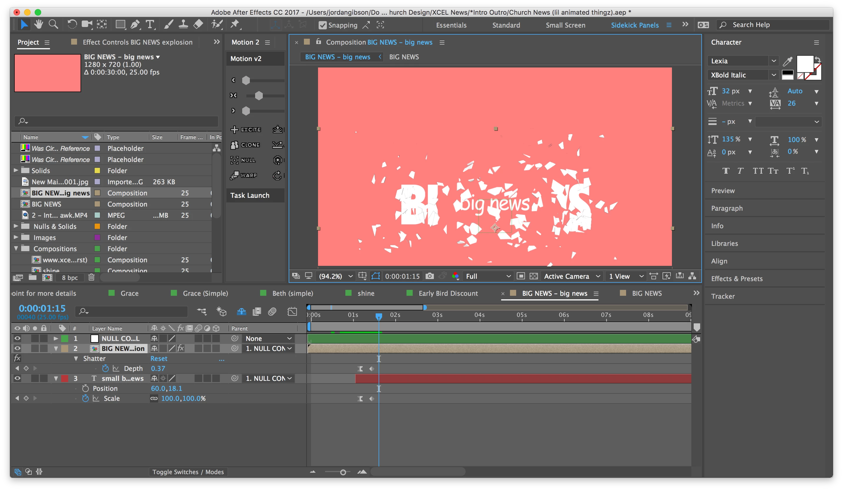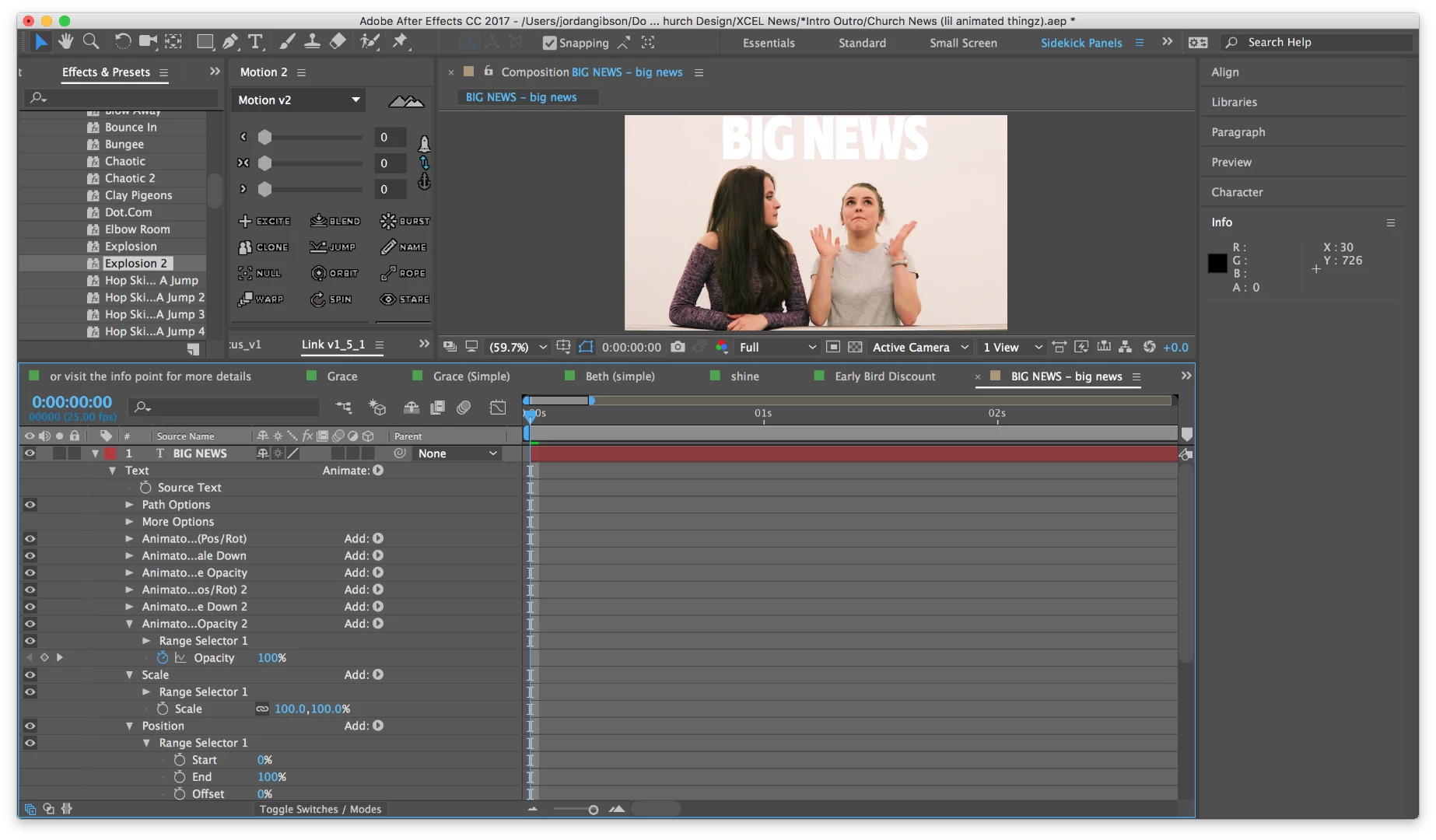 The thing I'm stuck with essentially - as dumb as it sounds - is how do I best animate the BIG NEWS falling in and exploding on the same text layer.