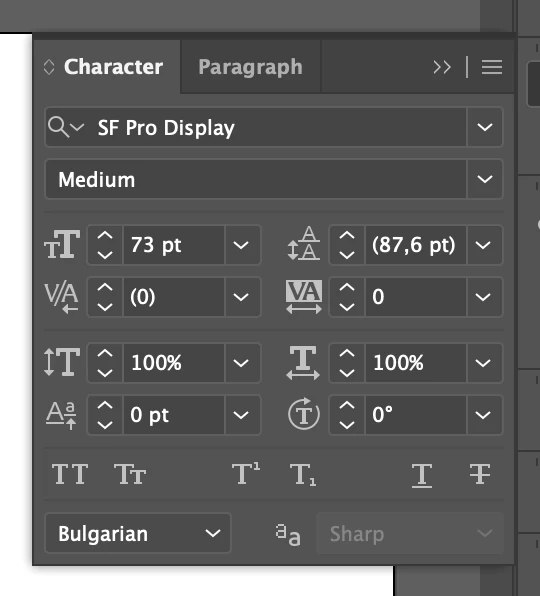 This is a screenshot from Illustrator. As you can see in the character, we have this option to change the input language. Here I putted it on Bulgarian.
