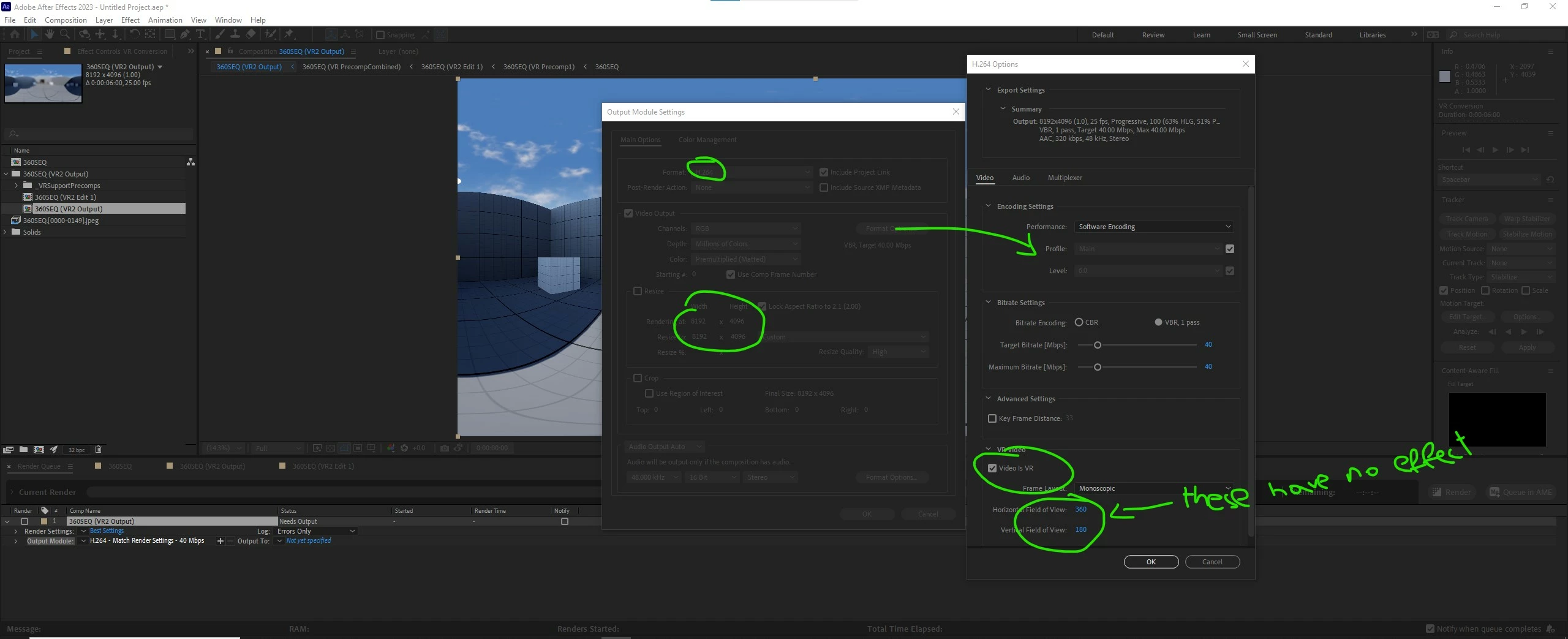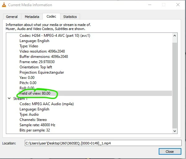 Hello, I am trying to change the field of view of my exported 360 videos.