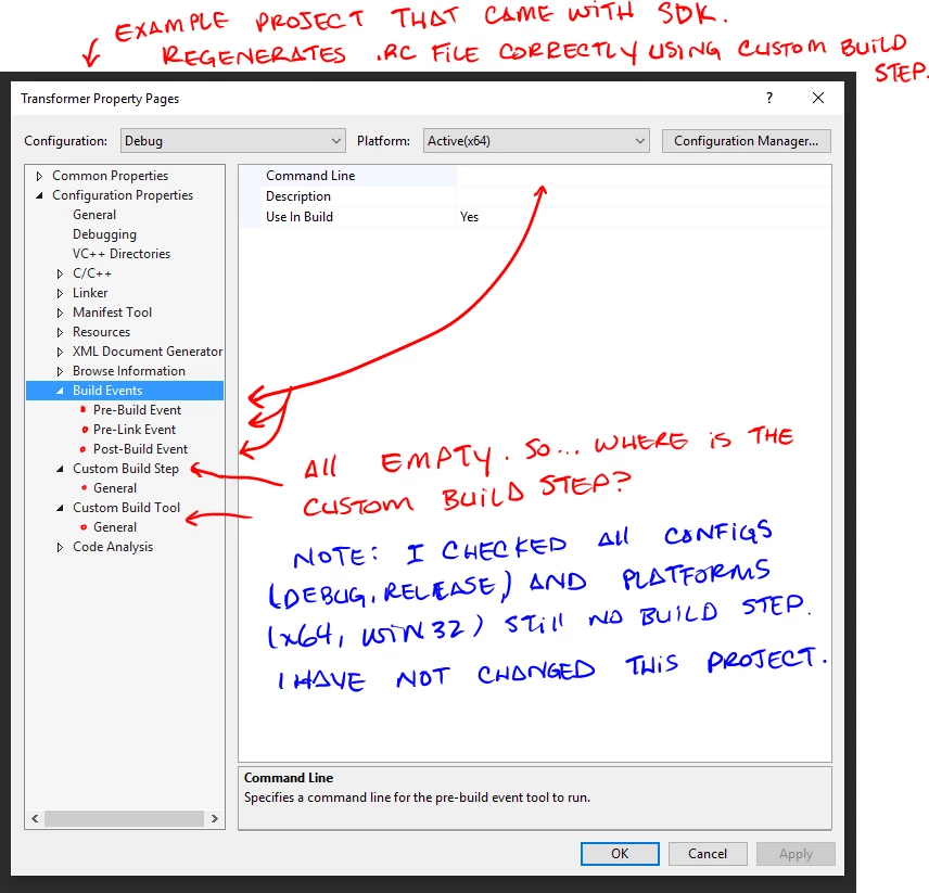 I tried copying custom build settings from other project to the .r file, but it doesn't seem to work at all. The .rc file stays the same despite the changes in .r file. If I remove the resource file from the project it is not linked, and if I remove it from the project directory, it says that it can't find the file, and does not compile it.