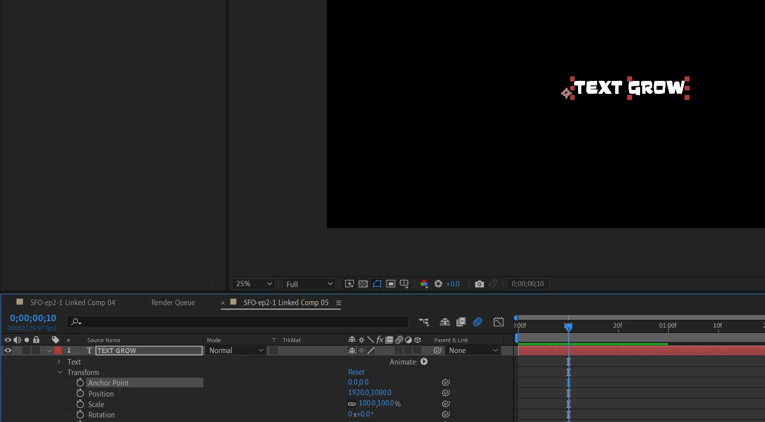 How to create a growing text but from the center of the achor point