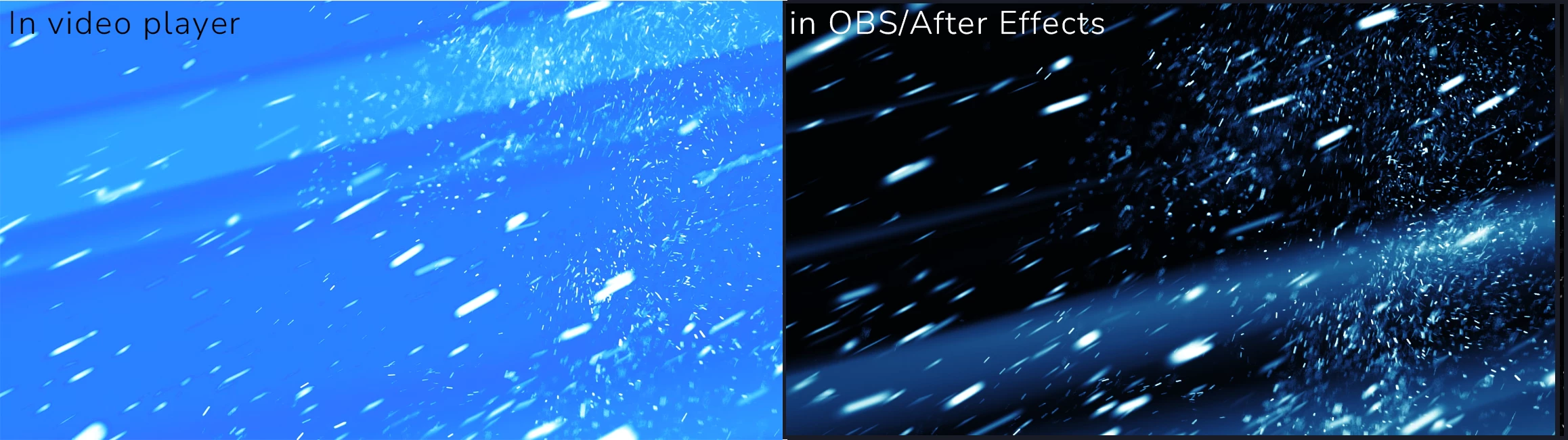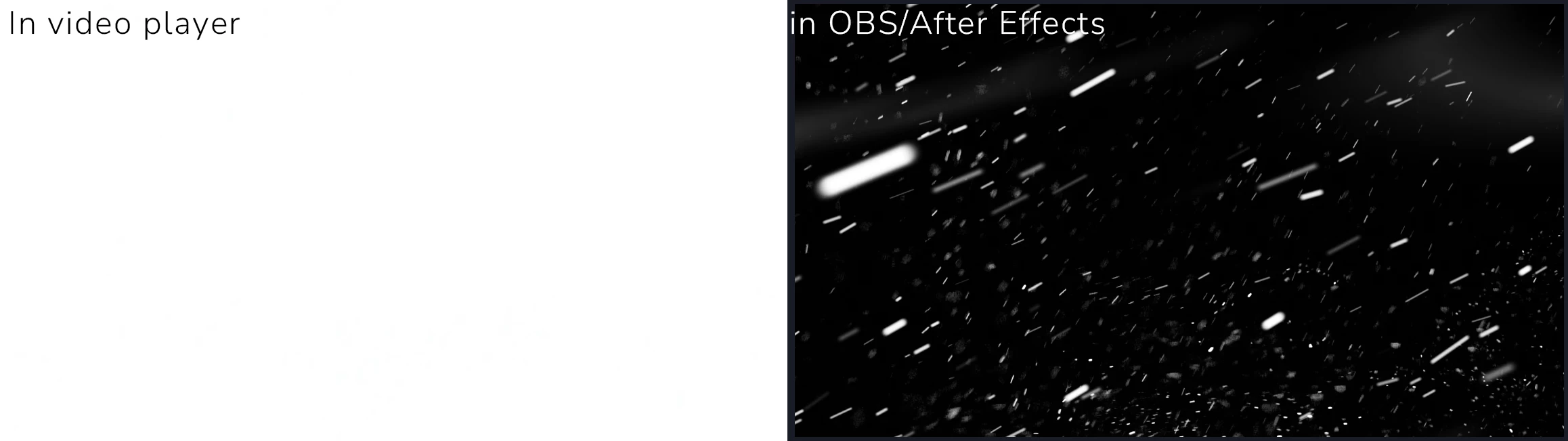 I've been creating a stinger to be used for streaming but OBS does a weird thing where it doesn't render semi transparency properly and I was about to give up on it until I saw someone post their snow blizzard stinger for free. I downloaded it because I wanted to figure out how they worked around the transparency but I noticed that when you view the video it looks like it has a background? When it's used in OBS or viewed on after effects it doesn't have the background.