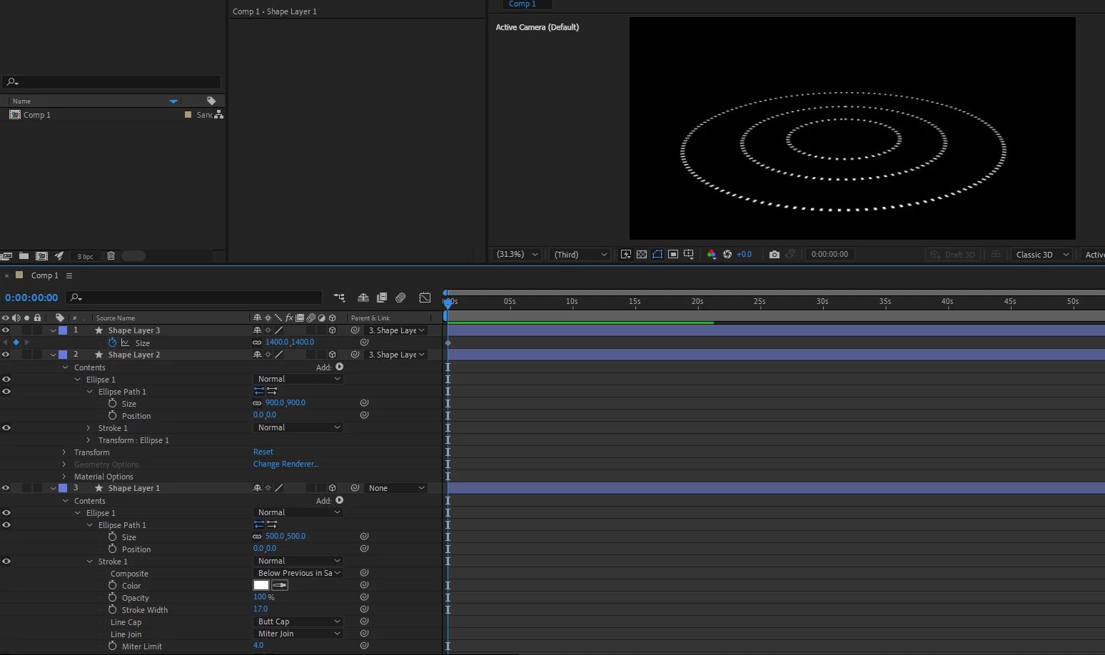 Can you use Shape layers with dashes and the layer made 3D and the rotation keyframed not do this: