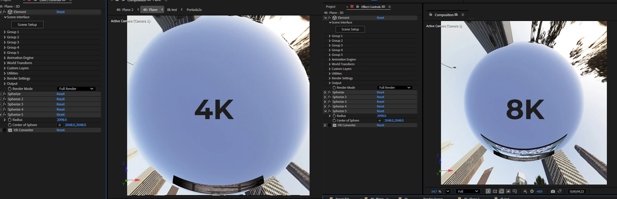 I'm experimenting with 8K resolution... The Spherize effect has a limit of 2,500 and doesn't cover my entire video. In 4K, the Spherize effect works fine and covers the video completely, but I need the extra resolution of 8K. In 8K, the effect only covers about half of the video.