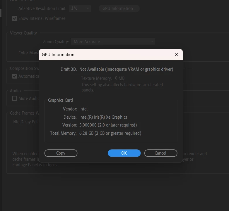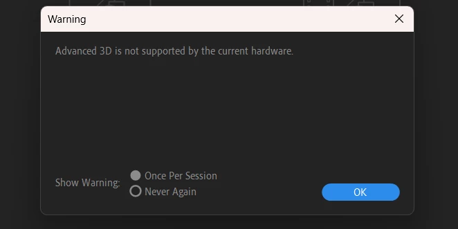 Hello, I have the problem of "advanced 3d is not supported by the current hardware after effects" and I have read the forum with the same topic but the solutions they gave, nothing have work with me and also i have seen the photoshop videos they put on the conversation but it doesn´t solve my problem, i have a lapton and it have a nvidia gtx 3060.