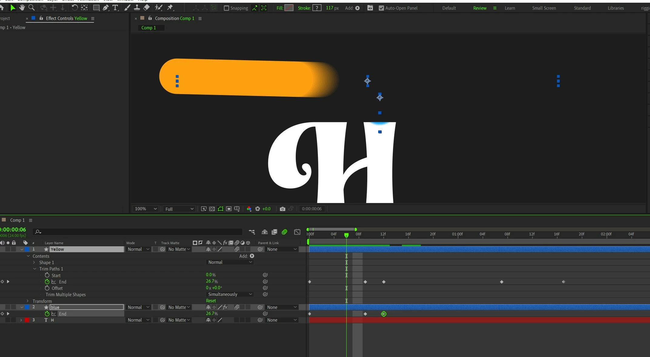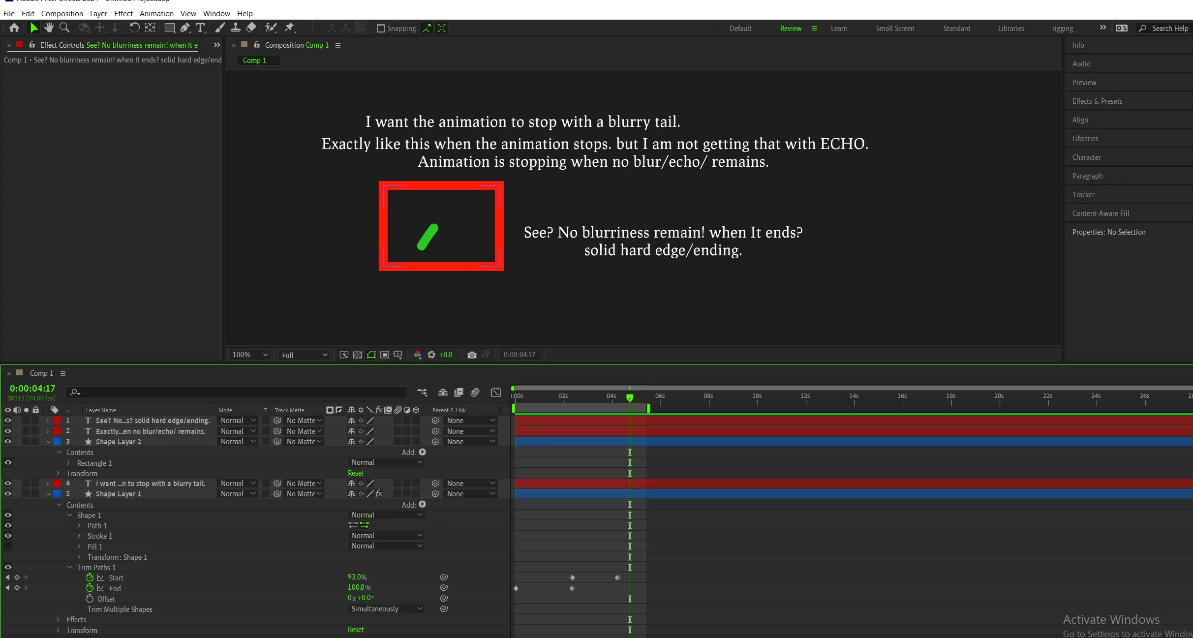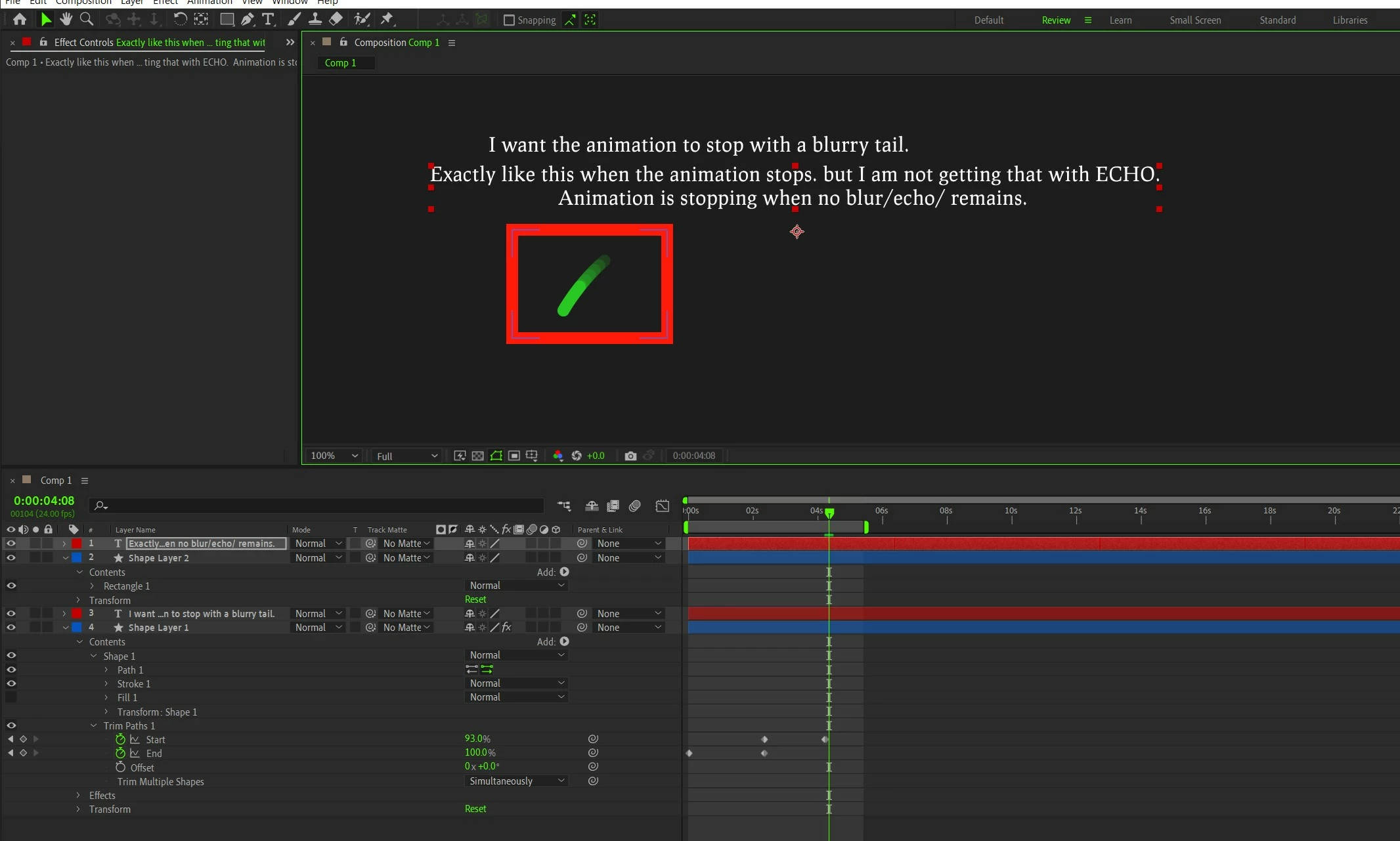 I need some guidance. How can I have a blurry end in stroke after applying Trim path animation? I have been trying for hours, studying motion blur, trying masking, feathering masks, Echo effect and what not 😠... but am rowing like a rudderless boat.. am going nowhere.