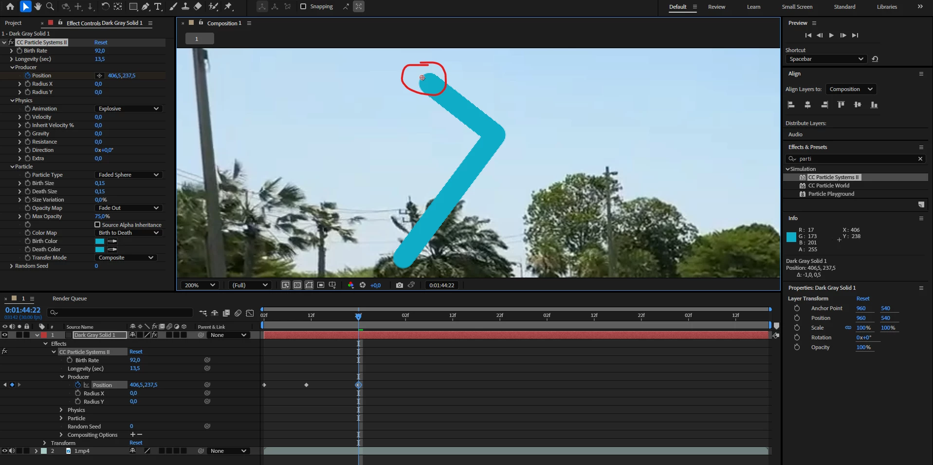 Hi! I've been trying to manipulate a particle path by dragging the red circle on the video preview to edit the position value of the particle to make a smooth motion path. However, it makes very jagged lines and doesn't get that smooth transition between two positions. Instead, it makes a hard angle and two straight lines. Does anyone know how to make these smoother? Is it something to do with Bezier? Anything helps, thanks!