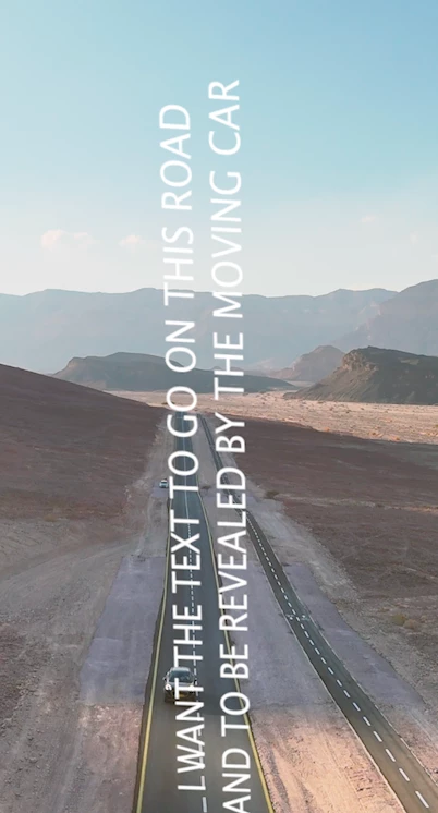i have a drone shot with a driving car across it (top to bottom). i want to have the car "revealing" text "written" on the road but i cant seem to get it perfectly like i want.