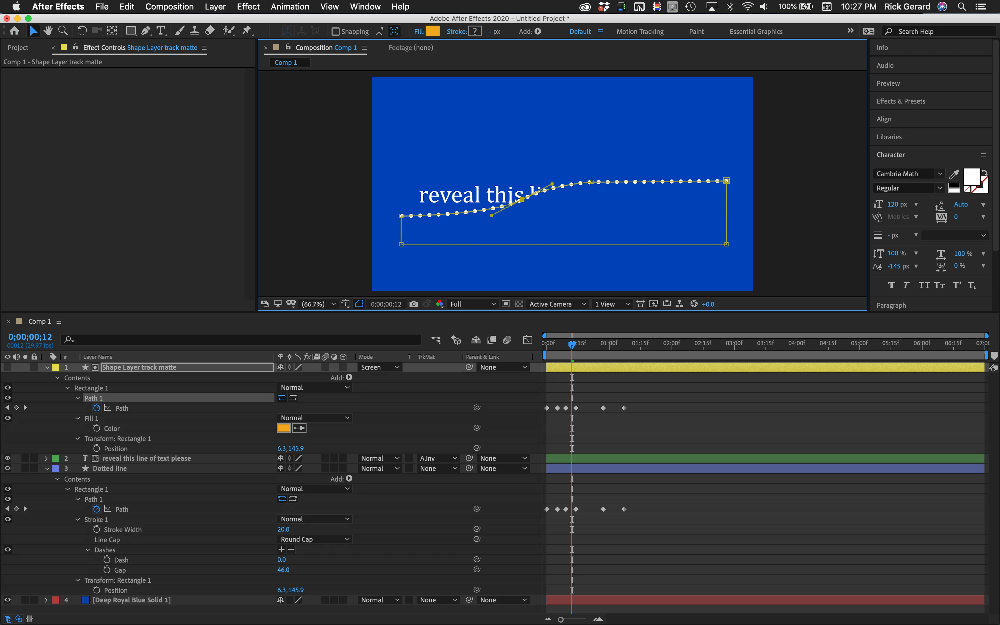 My question is how can I connect the dotted line to the text so that the text appears above the dotted line when animating? I'm essentially trying to use the dotted line to mask the text so it appears as if the dotted line is revealing that text.