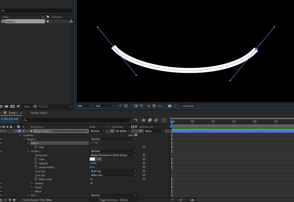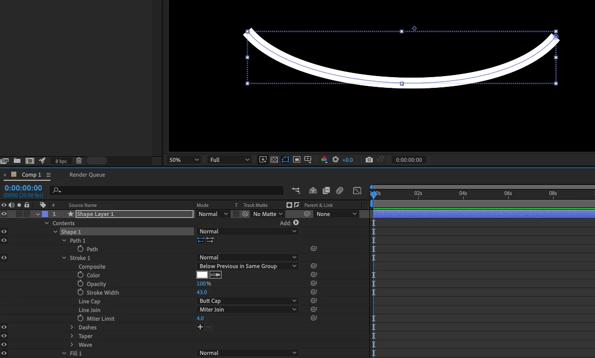 1 - Select any element of the Shape layer in the timeline window to get the bounding box.