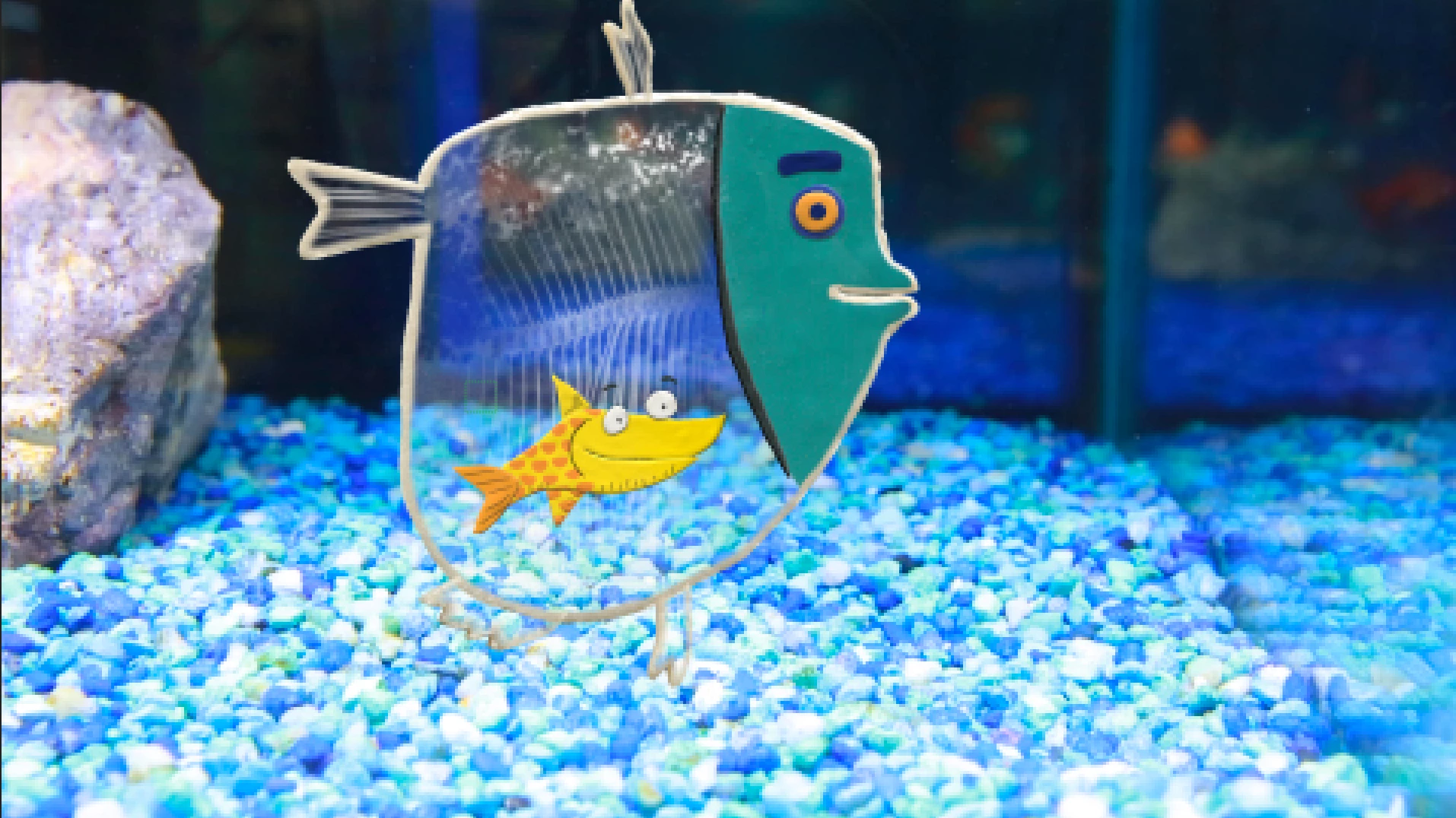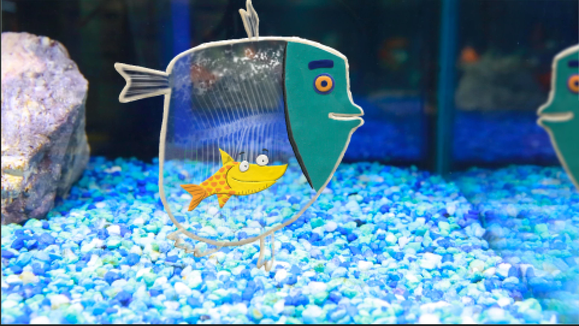 I have added a copy of the character layer to look like it is reflected in the glass. (Along with a couple of added effects to look more like a reflection.)