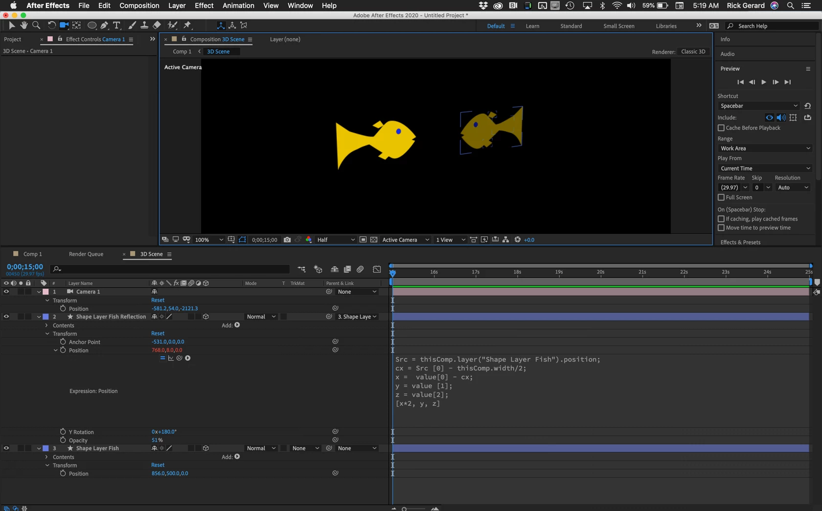 How can I get the reflection character to move in the identical opposite way of the original layer? I know I can't simply parent the reflection to the original layer, because the reflection will always go the wrong way.