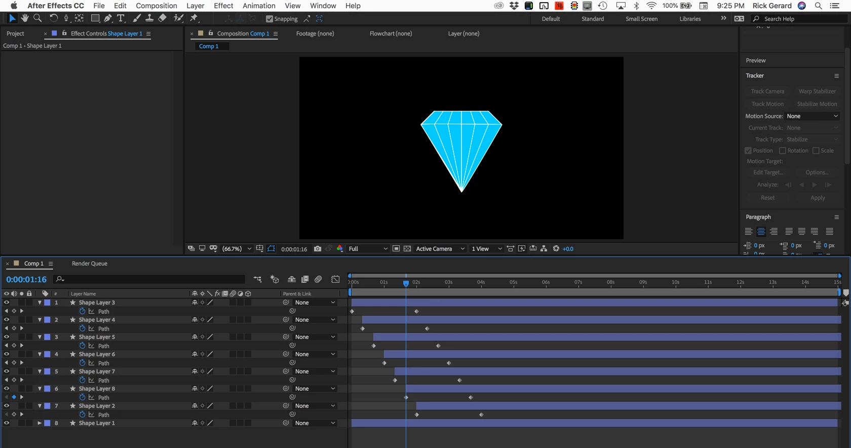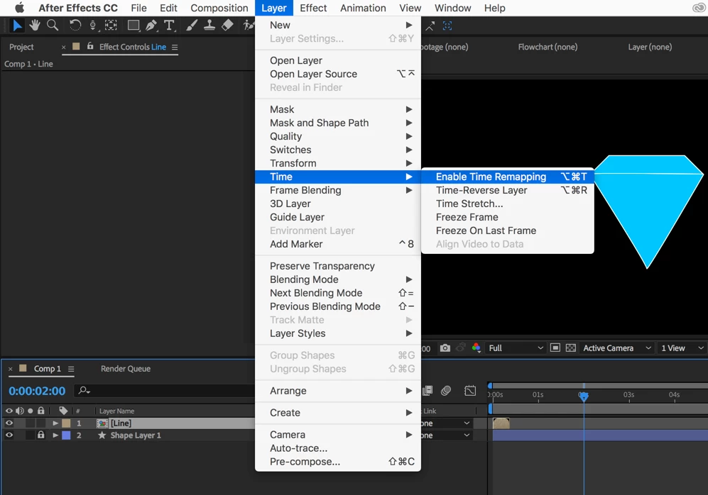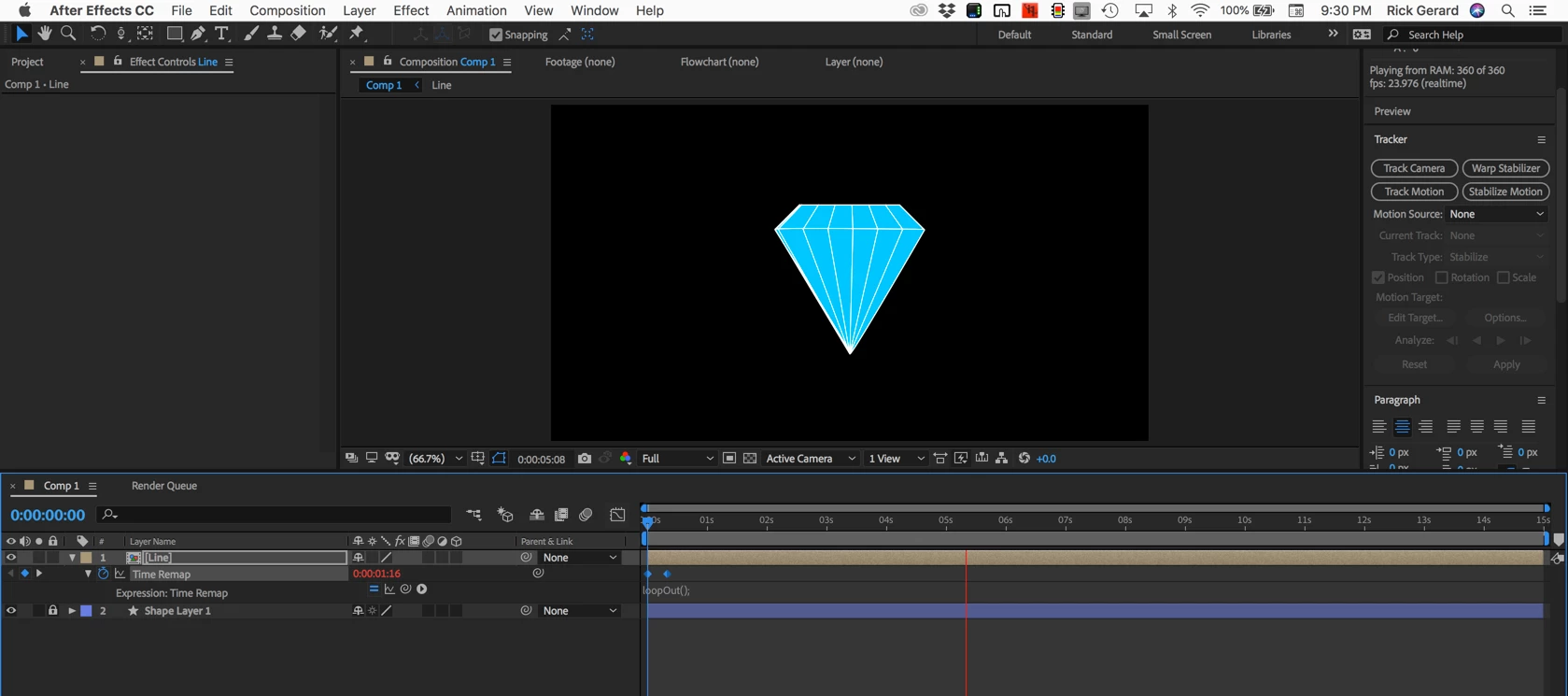 Then you can extend the out point of the pre-comp (nested composition) and let the diamond loop as long as you want it to.