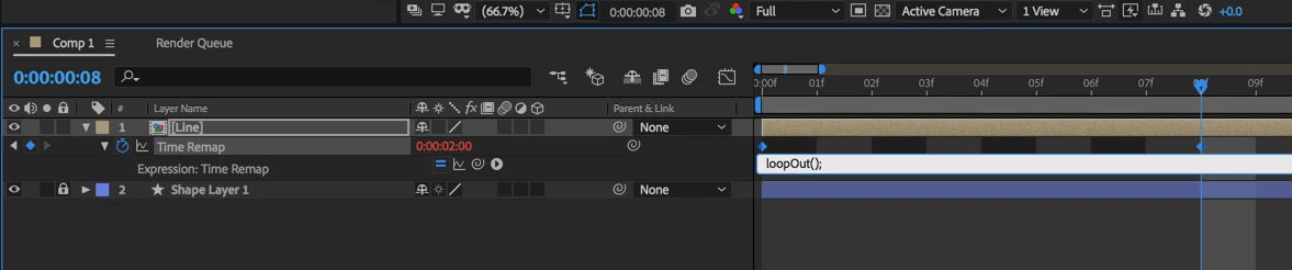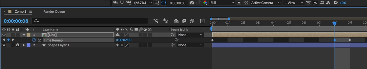 The next step is to move the pre-comp to the first frame and add time remapping: