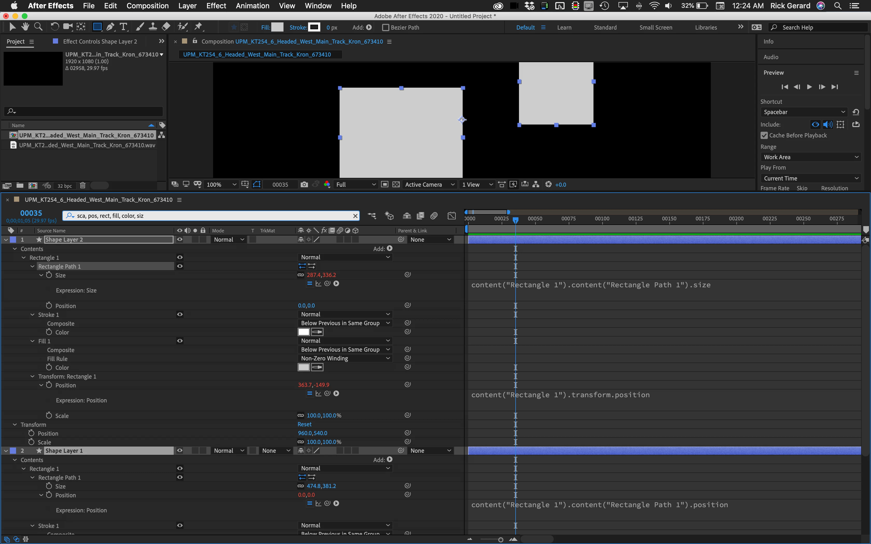 Here is one more hint, and I use this all the time. Let's say that I have several shape layers, some of them have rectangles and some of the rectangles have Rectangle > Transform Rectangle position properties with expressions. I also want to see the scale properties of all selected shape layers. Here's the shortcut:
