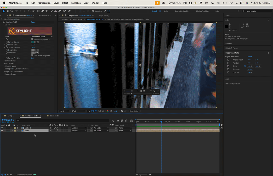 I'm trying to super-impose something into the river in this clip and make it look like its "behind" the railings. I've tried rotoscoping everything that isn't water and putting that on top but the results have been quite poor. Any other ideas?