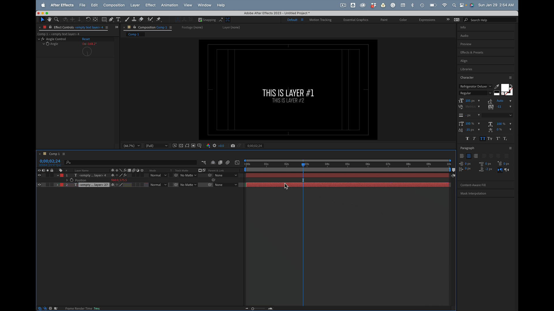I set slider controls on the Center Null so I can control the values of the minimum and maximum scale and opacity, as well as the distance from the Center Null that those min's and max's should apply.