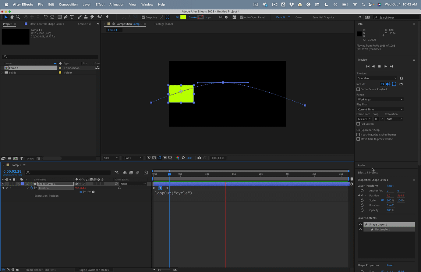 How can I write an expression to something move, even diagonally, and have it wrap around once it goes outside view and to keep doing this over for 10+ mins?