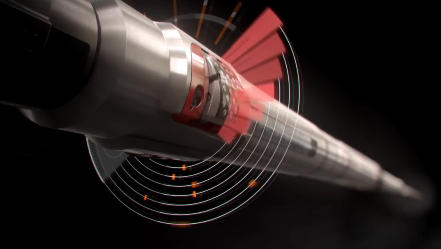Could anyone give me a very basic explanation of how the HUD in the above image would have masked so that it sweeps around the back of the object. Just a few clues would be enough and then i can google it. I think the animatiuon was created in 3ds max and the the huds added afterwords. Full video is below: