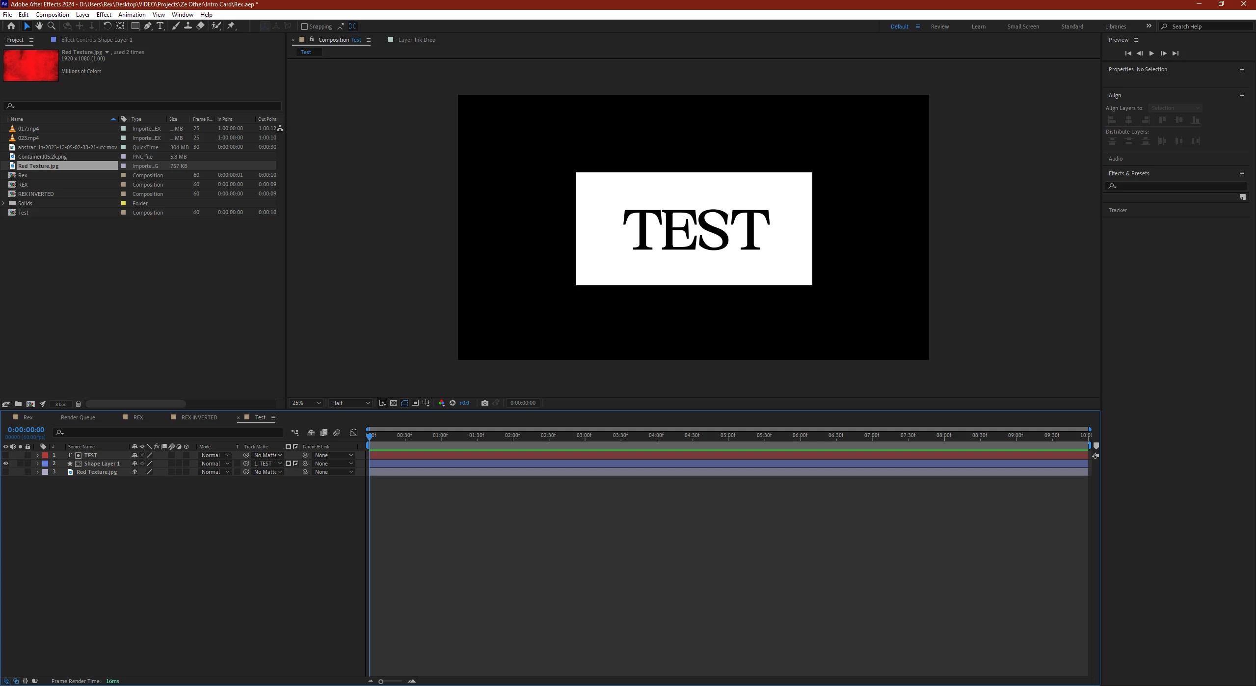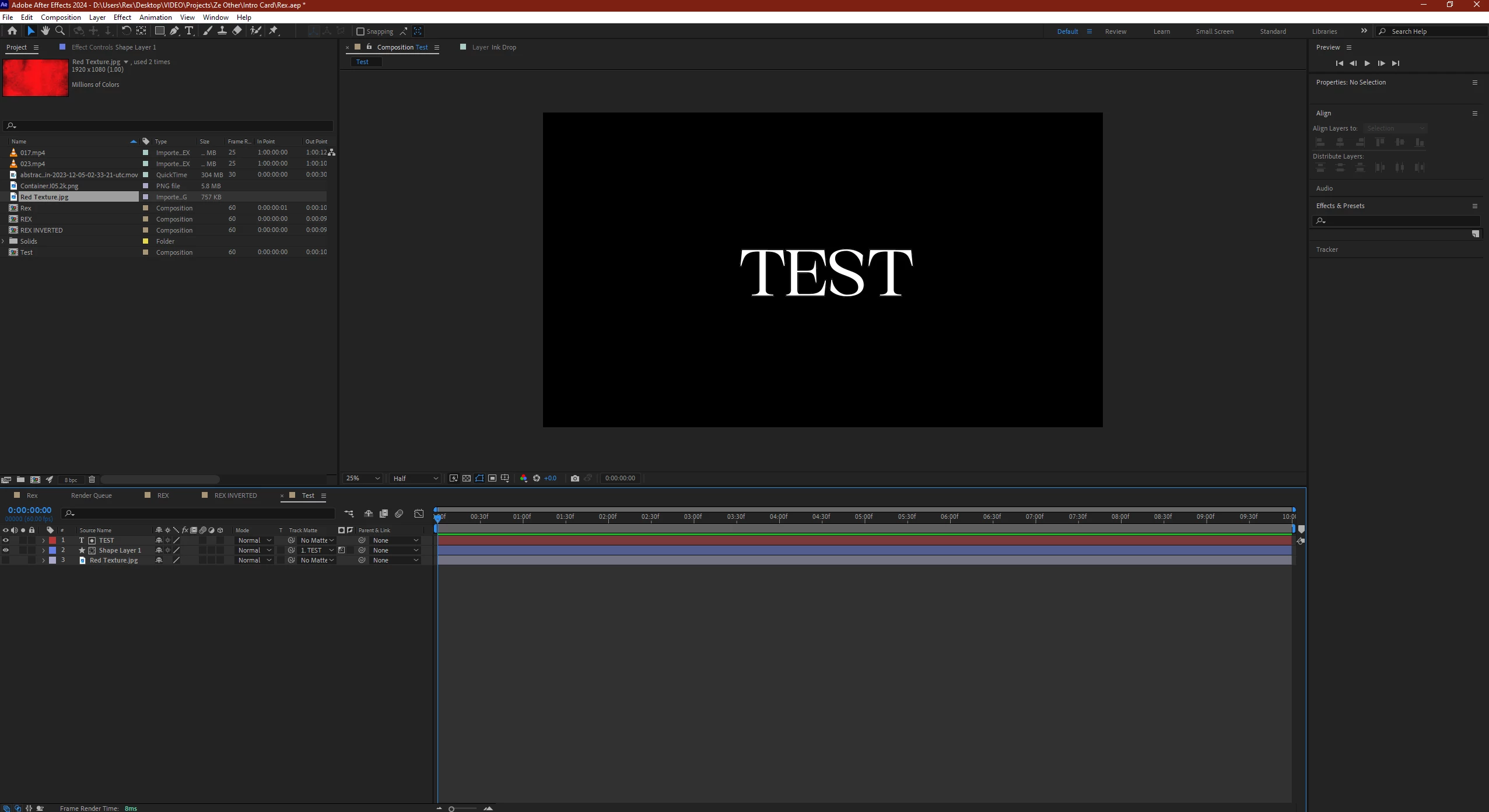 I just want my black text to show on this new alpha matted rectangle with the red texture. I need to use alpha mattes to acheive this effect as I'm trying to do something else with this premise. Why doesn't it work, a tutorial I'm following shows these exact steps to get this result. What am I doing wrong???
