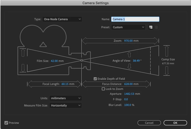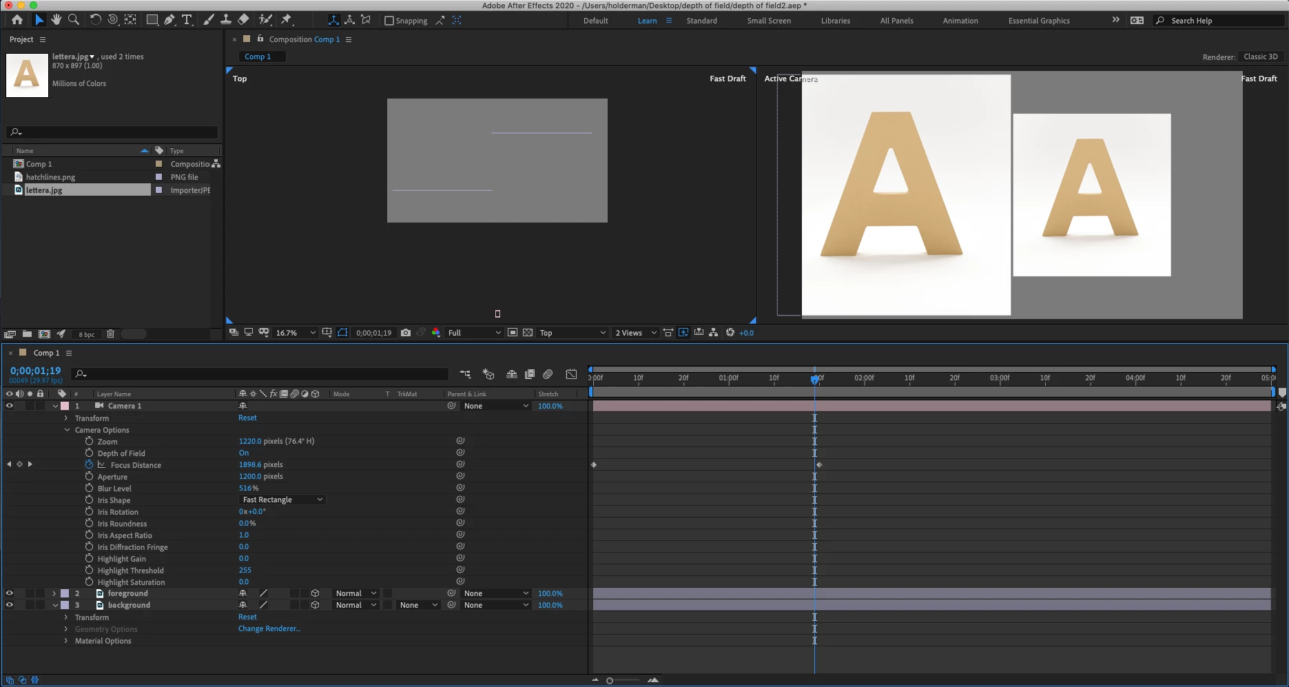 I can't seem to get After Effects 17.02 to show depth of focus effect