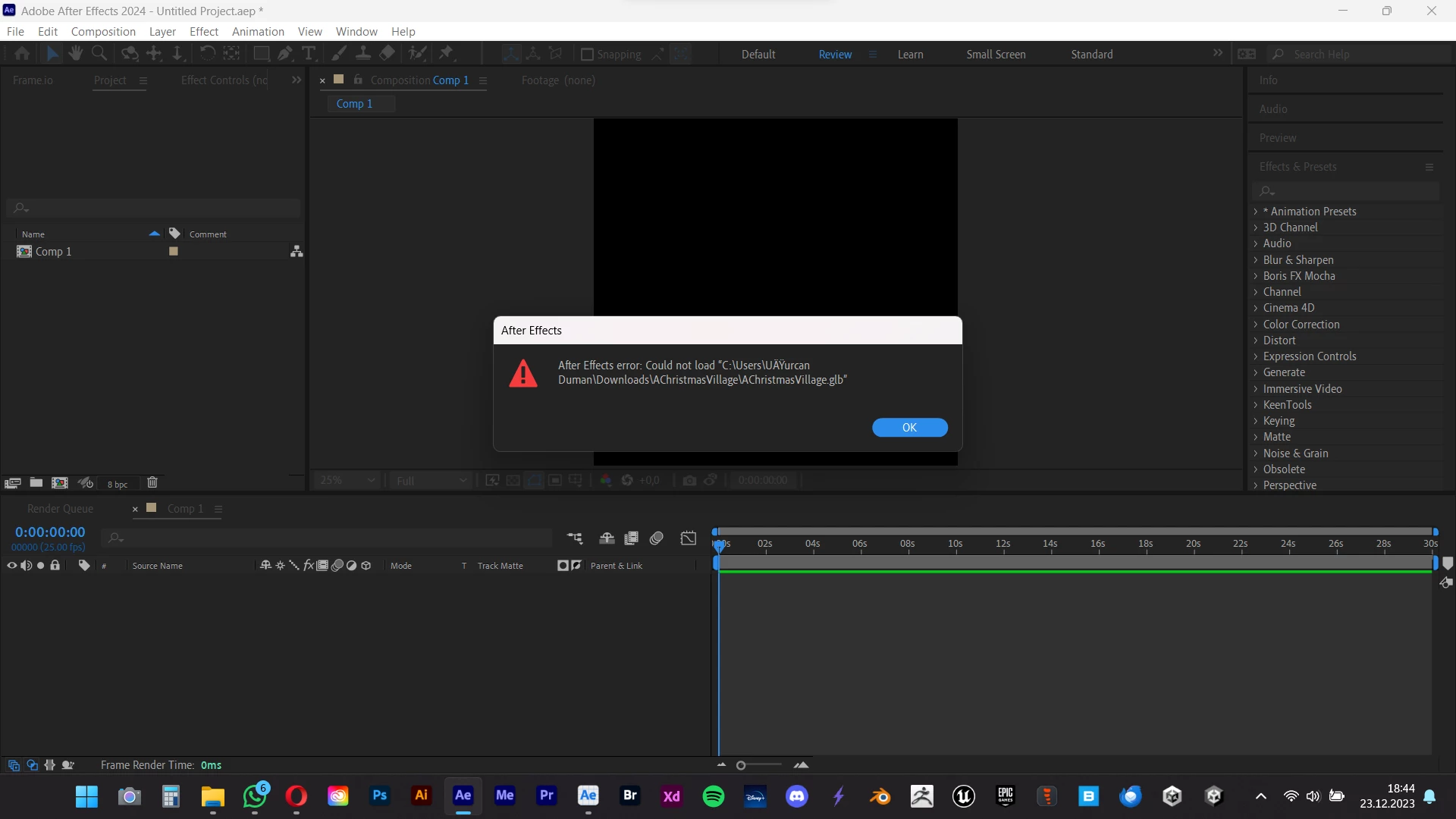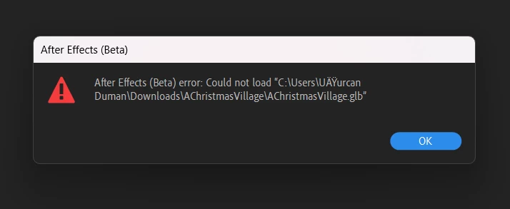 I cannot load the file with .GLB extension into After Effect 2024 and After Effect Beta.