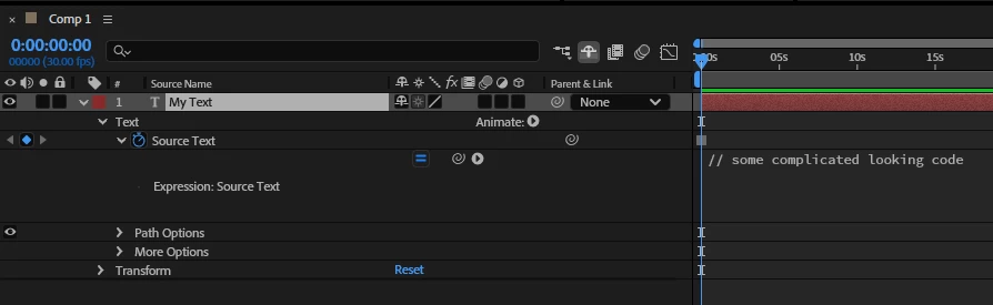 If so, twirl down the text layer on the timeline until you can see Source Text. Does it look like this: