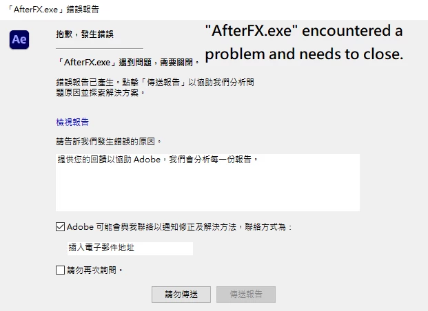 I encountered an afterFX error, what should I do?