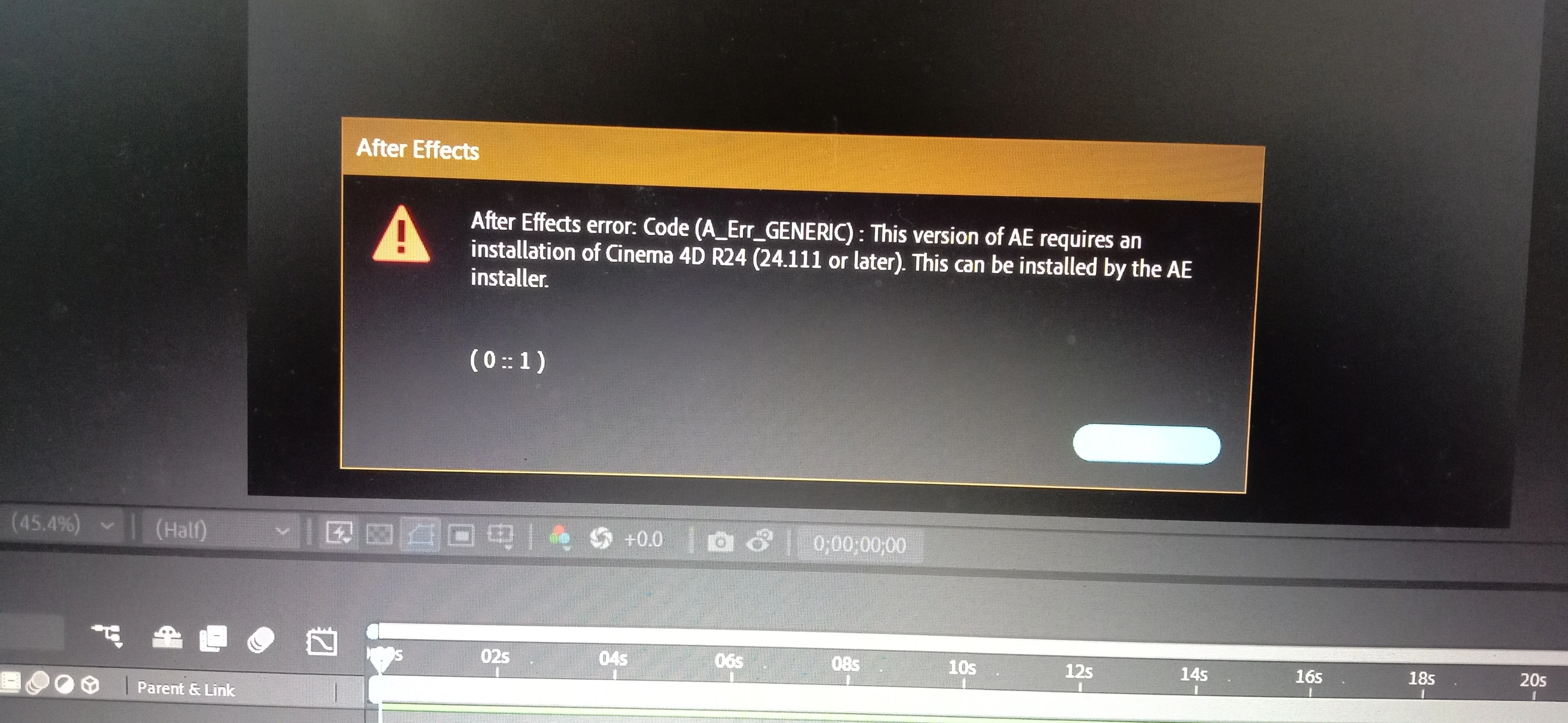 After Effects error: Code(A_Err_GENERIC): This version of AE requires an installation of cinema 4D R24 (24.111 or later).This can be installed by the AE installer