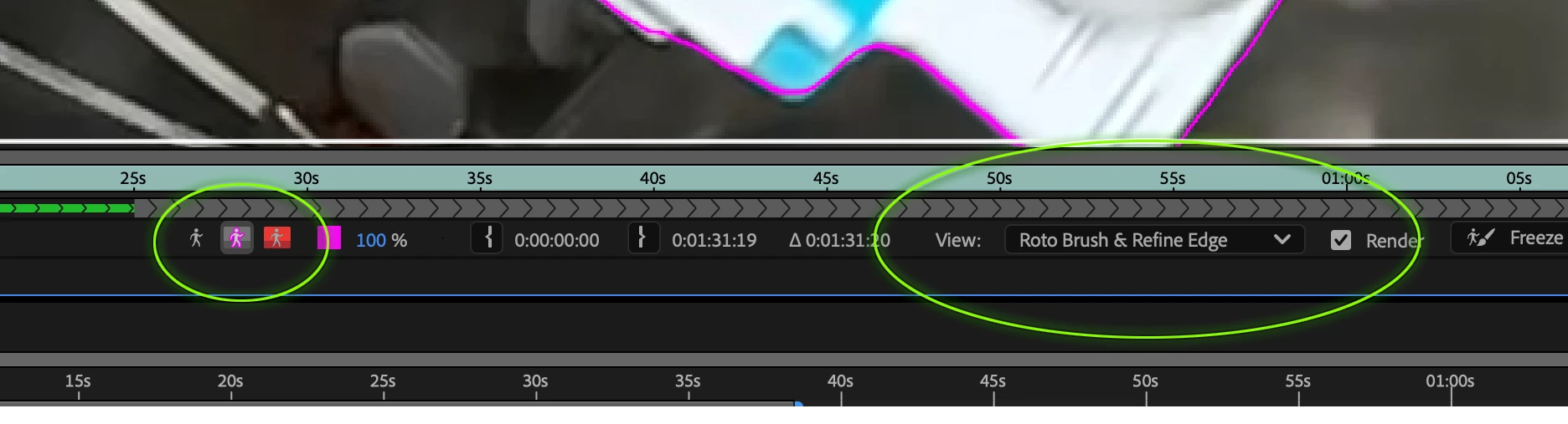 My roto brush is not previewing the way I am used to: how do I get the main image to appear with the roto part in green...?