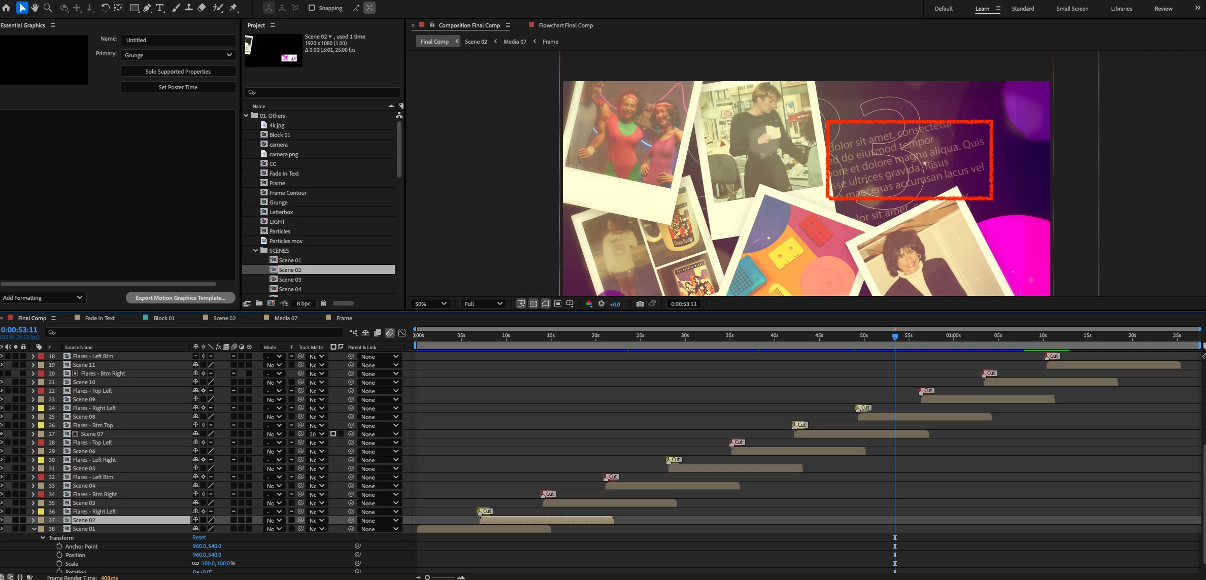 I have the TranSMaxX Nostalgic Polaroid Photo Slideshow with Cinematic Flares template from Videohive. There is lorem ipsum background text that I cannot find or delete. Has anyone used this template and knows where that layer is hidden?" I’m a long time AE user and I’ve never had such a hard time finding a layer! Thanks!