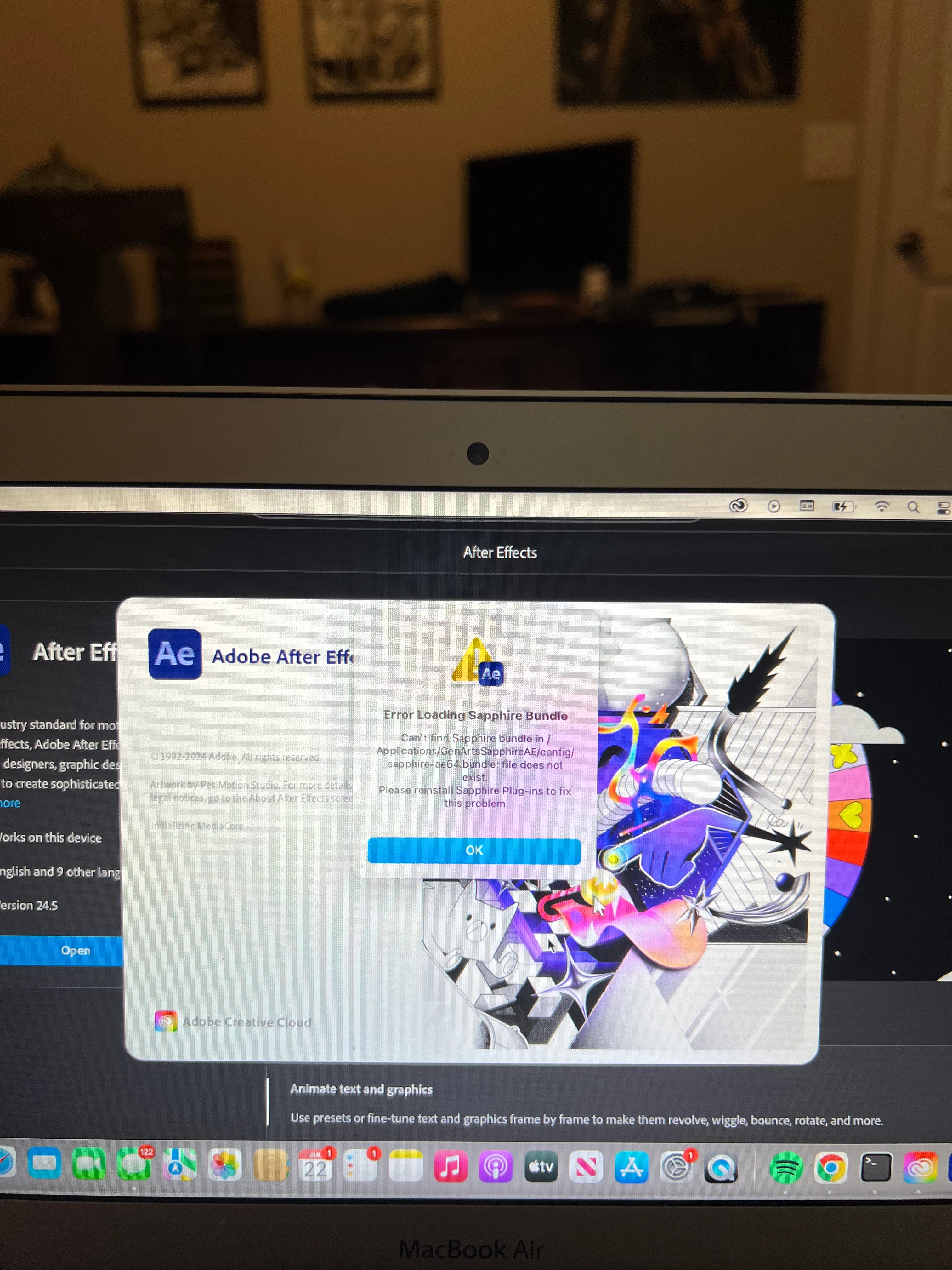 RRaegan387524138johParticipantForum|Forum|1 year agoJuly 23, 2024QuestionI just got after effects and when I was trying to open it this popped up. Please help!Forum|Forum|1 year agoJuly 23, 20242 replies249 views Error or problem