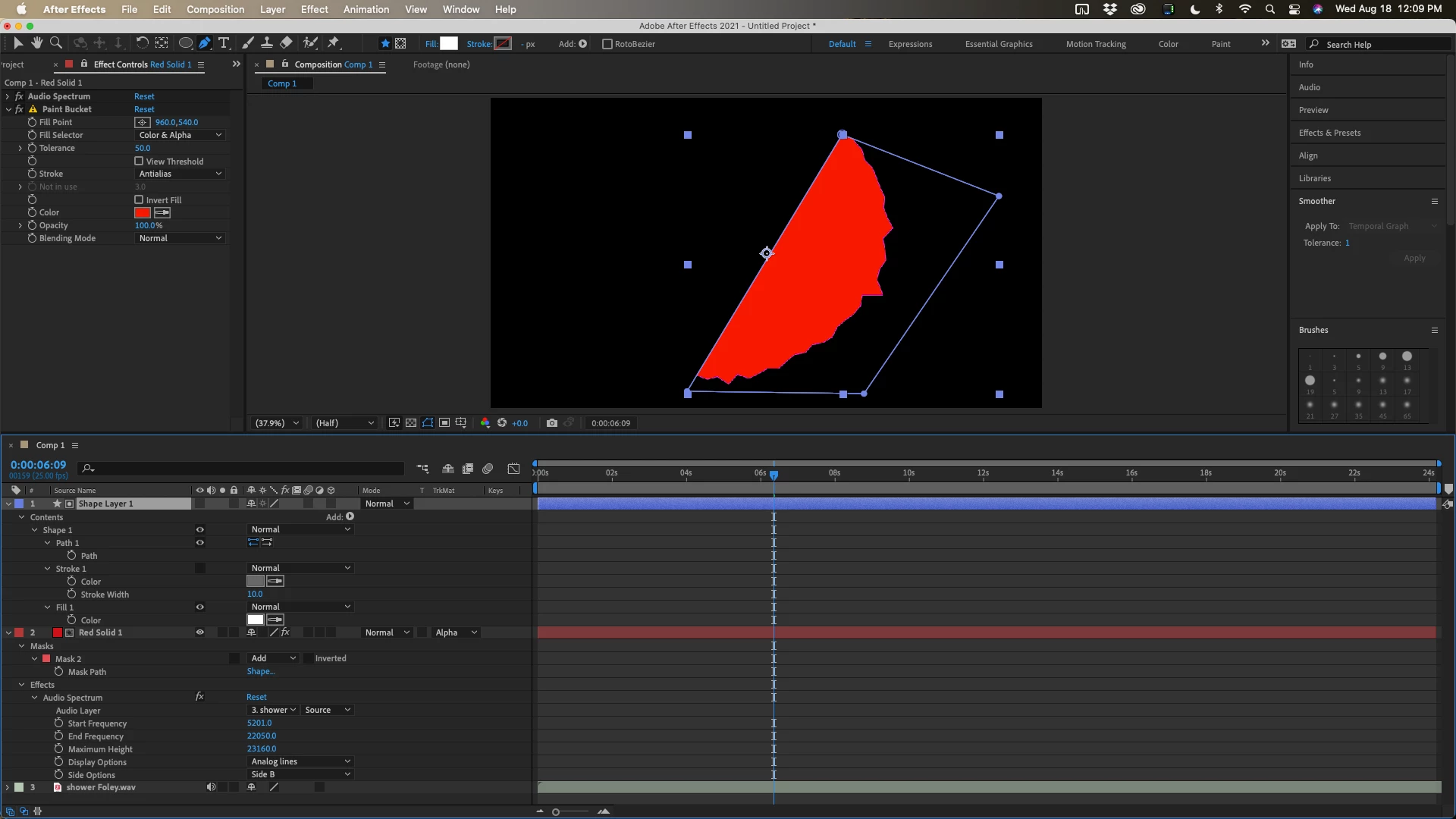 I am trying to have a red paint bucket fill between my red audio spectrum, and the two bold white lines the ends of the spectrum are touching. Every time I use it however, it just fills the whole screen. What dumb mistake am I making?