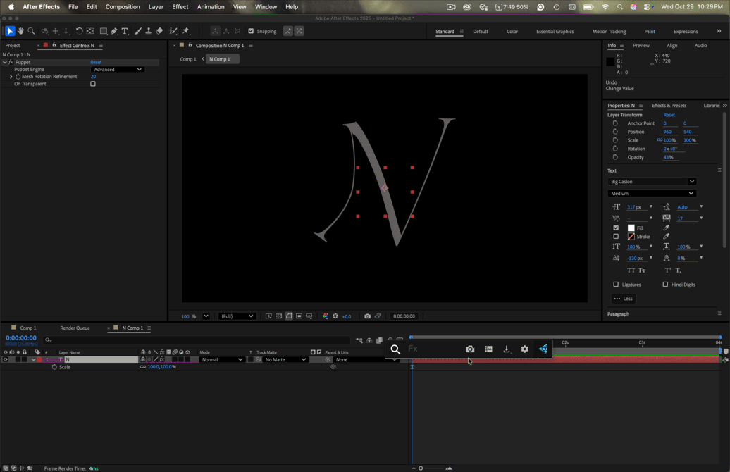As you can see. The puppet pins will retain the initial position instead of following the letter N as it moves.