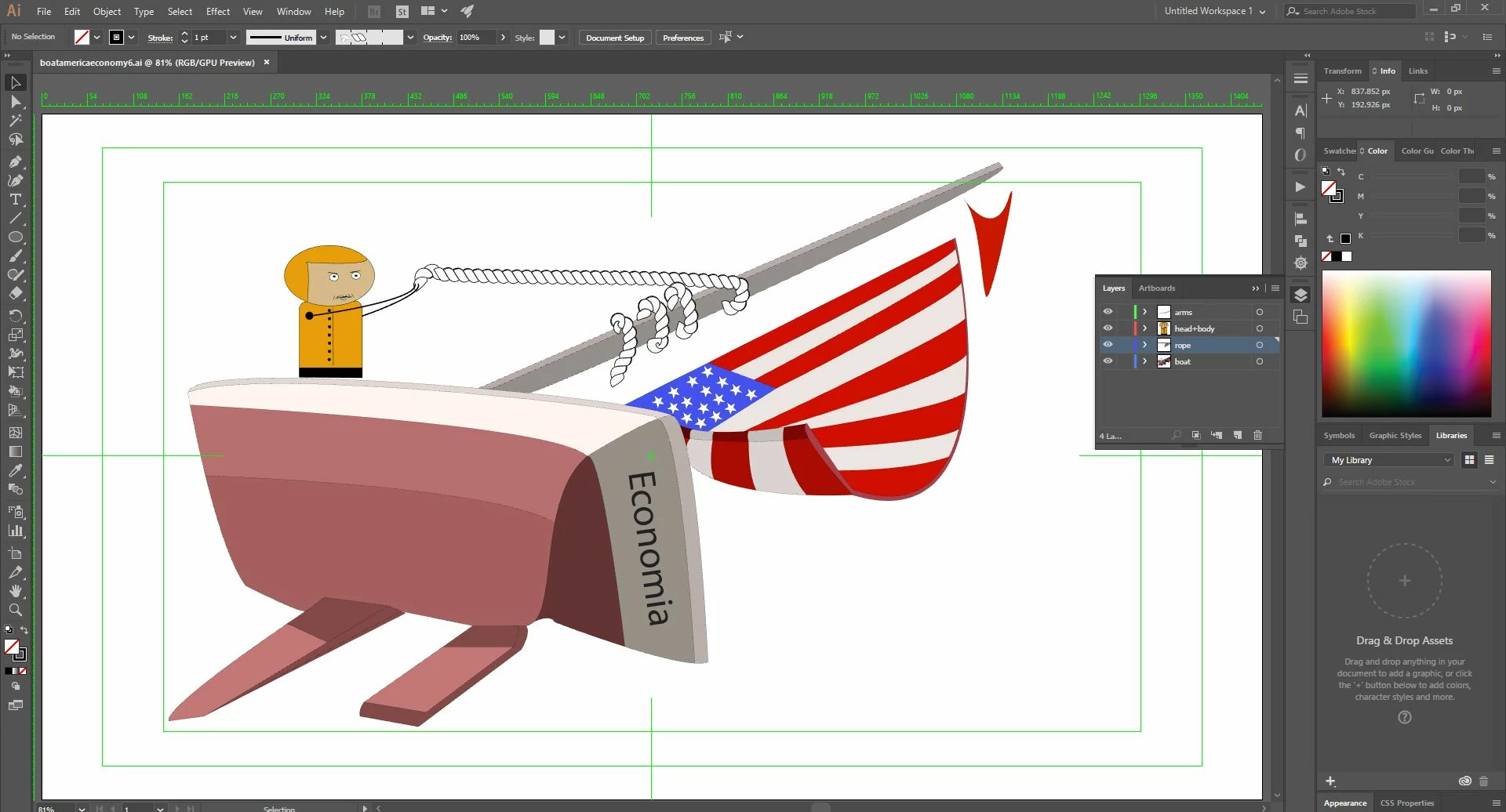 I am trying to animate a guy pulling the rope but when I import in After Effects, the guy is missing, also the rope and the text on the boat...