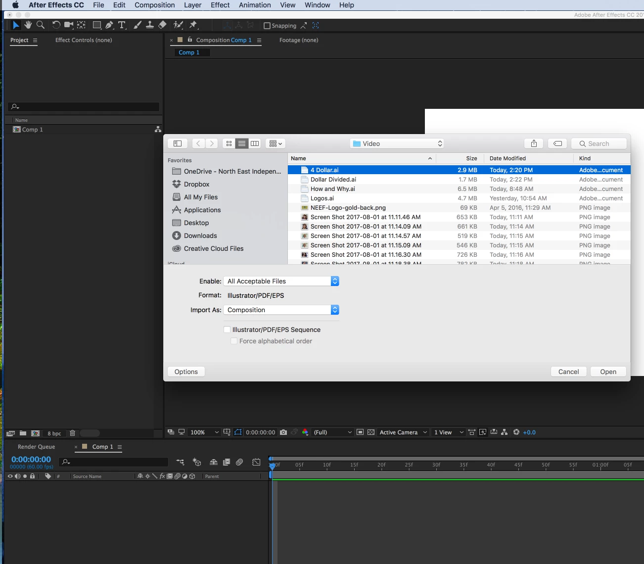 For some reason AI layers will not import into After Effects. using the composition setting. On El Capitan, Could that be the issue?